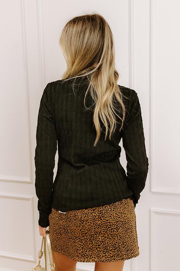- Chic and charming, this trendy knit top brings instant style to your look! Its playful texture and mock neckline make it a true standout in your wardrobe. - Unlined knit material lattice texture - A frilled mock neckline with a smocked section on the back - Long sleeves with frilled cuff detailing - A relaxed yet flattering silhouette that ends in a frilled hemline
