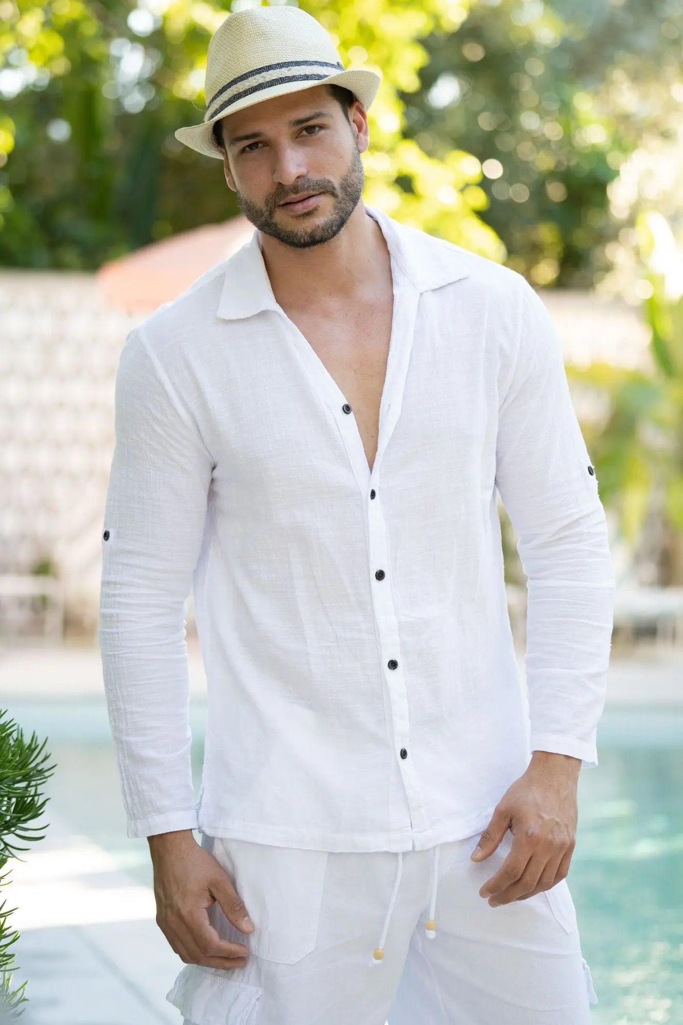 The Capri Classic Long Sleeve Top is made from a high quality cotton fabric. This style features a deep V-neck with a collar and centre front buttons. Perfect for a night out or vacation.