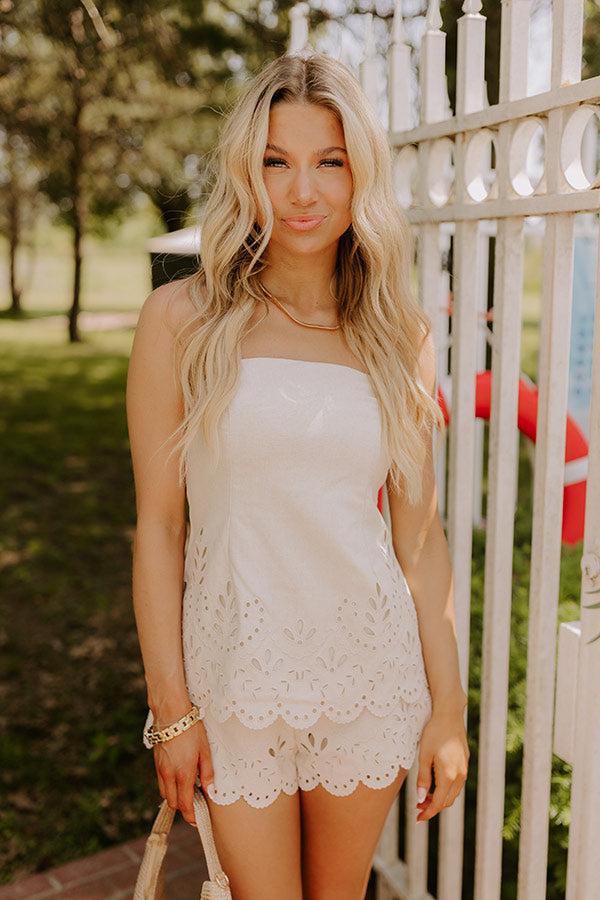 - Full of sweet energy and playful detail, this eyelet top is made to stand out. The scalloped hem adds the perfect touch of charm to your casual look.