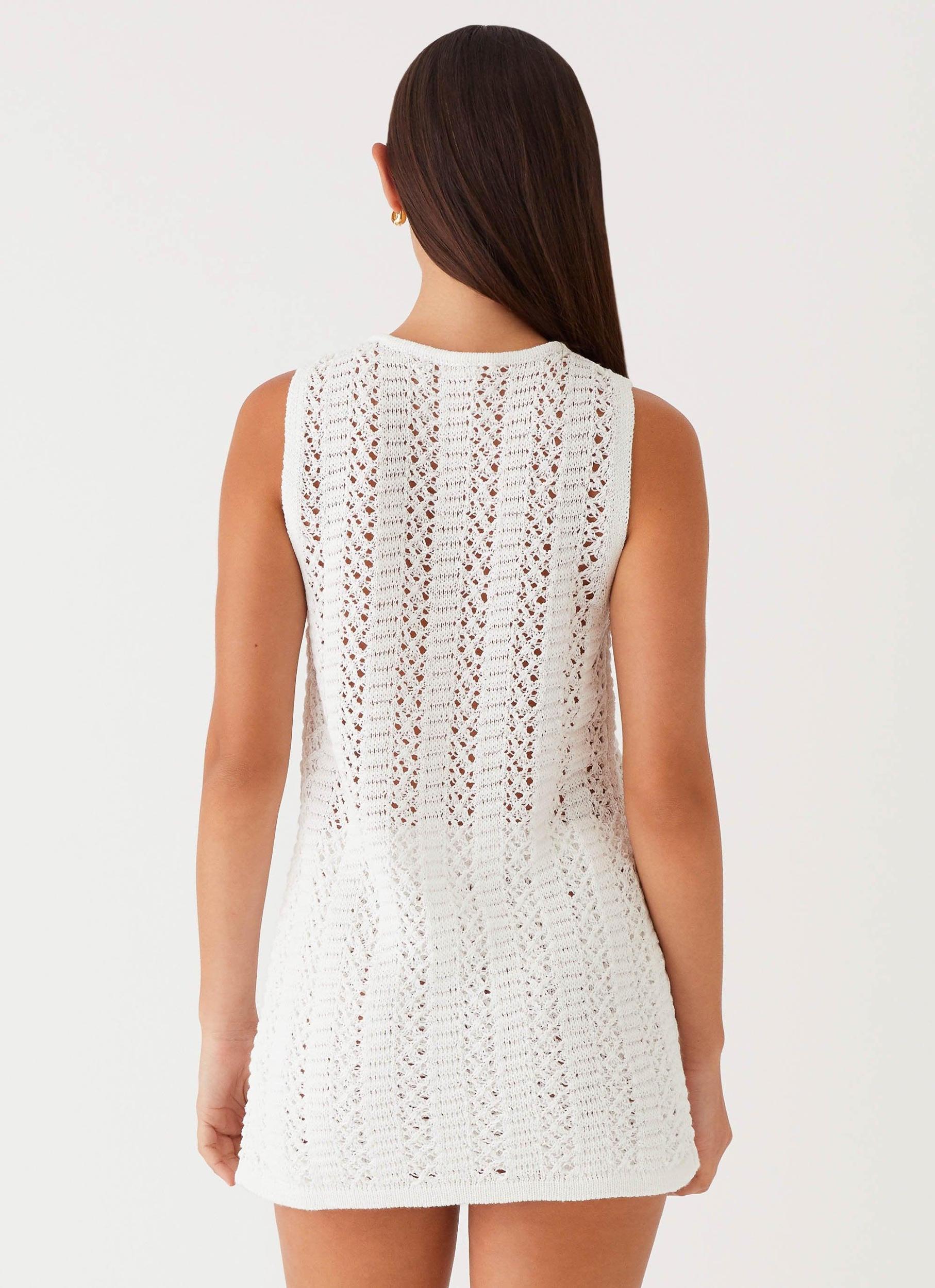 Peppermayo Exclusive Elevate your ensemble with the sophisticated allure of the Capri Glow Knit Top. Crafted in a longline vest style, this sleeveless top exudes modern chic and timeless elegance. The button closure at the front adds a touch of refinement, perfect for adding a polished finish to your look. Made from semi-sheer knit fabric, it creates a mesmerising glow, ensuring you stand out with radiant beauty. - Longline vest-style top- V neckline- Sleeveless- Button closure at front- Semi-sheer knit fabric- Split detailing- 100% Knit Size AU 8 / US 4 garment measurements: Bust: 88cm / 34.6 inWaist: 85cm / 33.5 inLength: 73cm / 28.7 in Roberta is 177cm and wears size AU 6 / size US 2