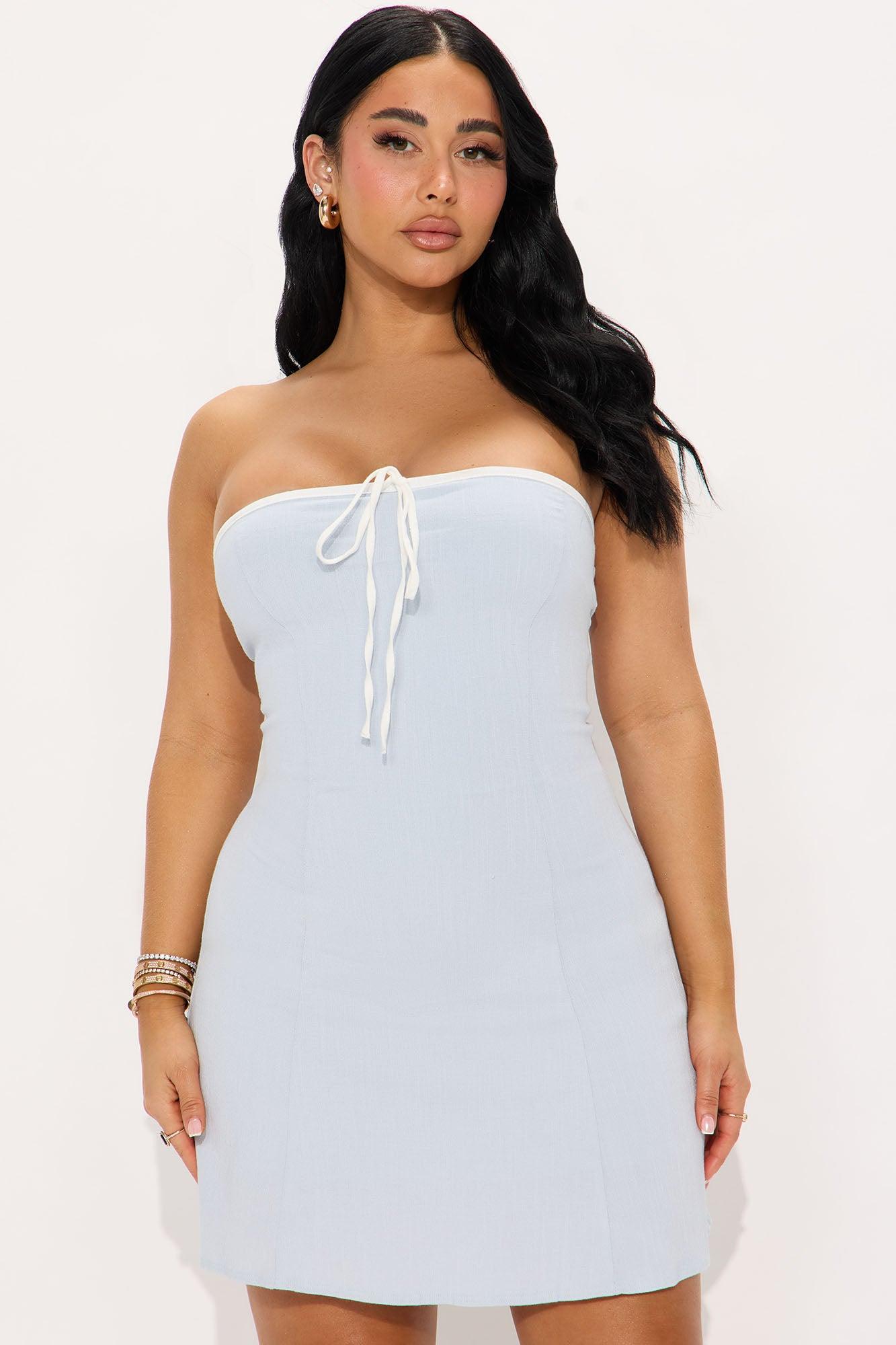 Caprice Stretch Linen Mini Dress - Light Blue