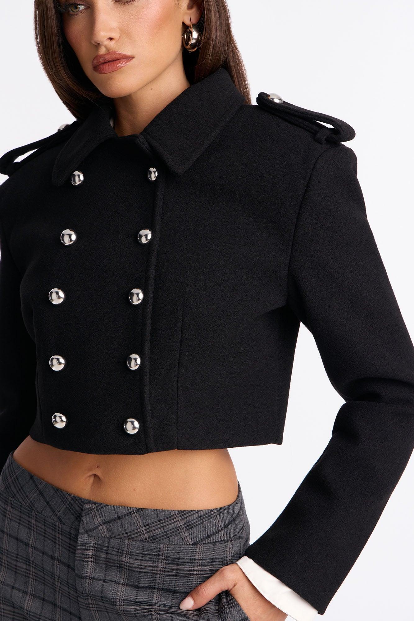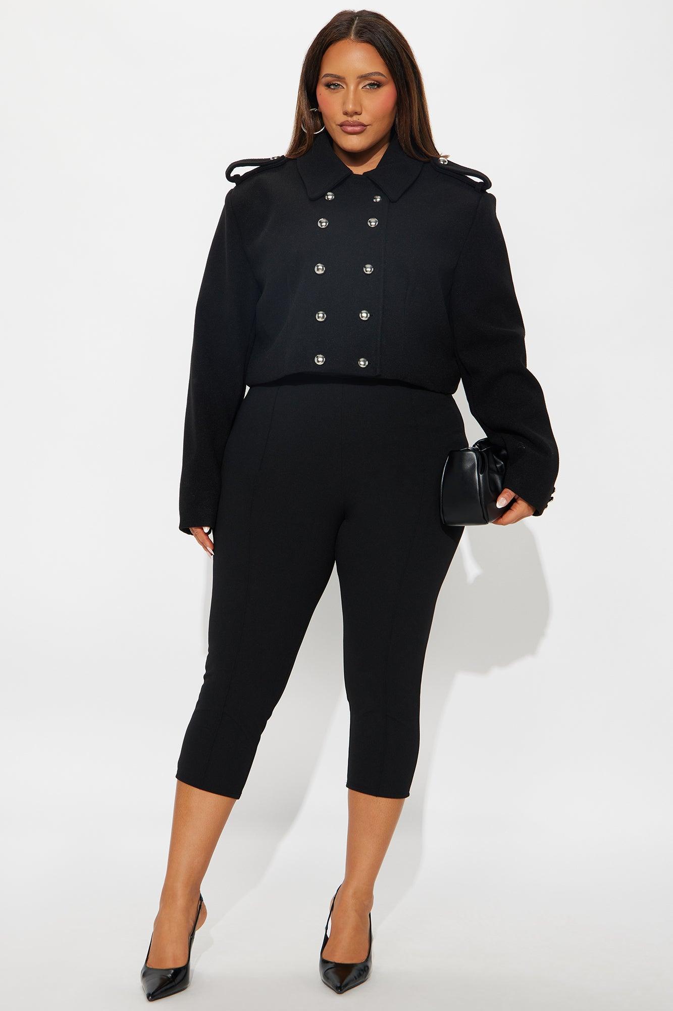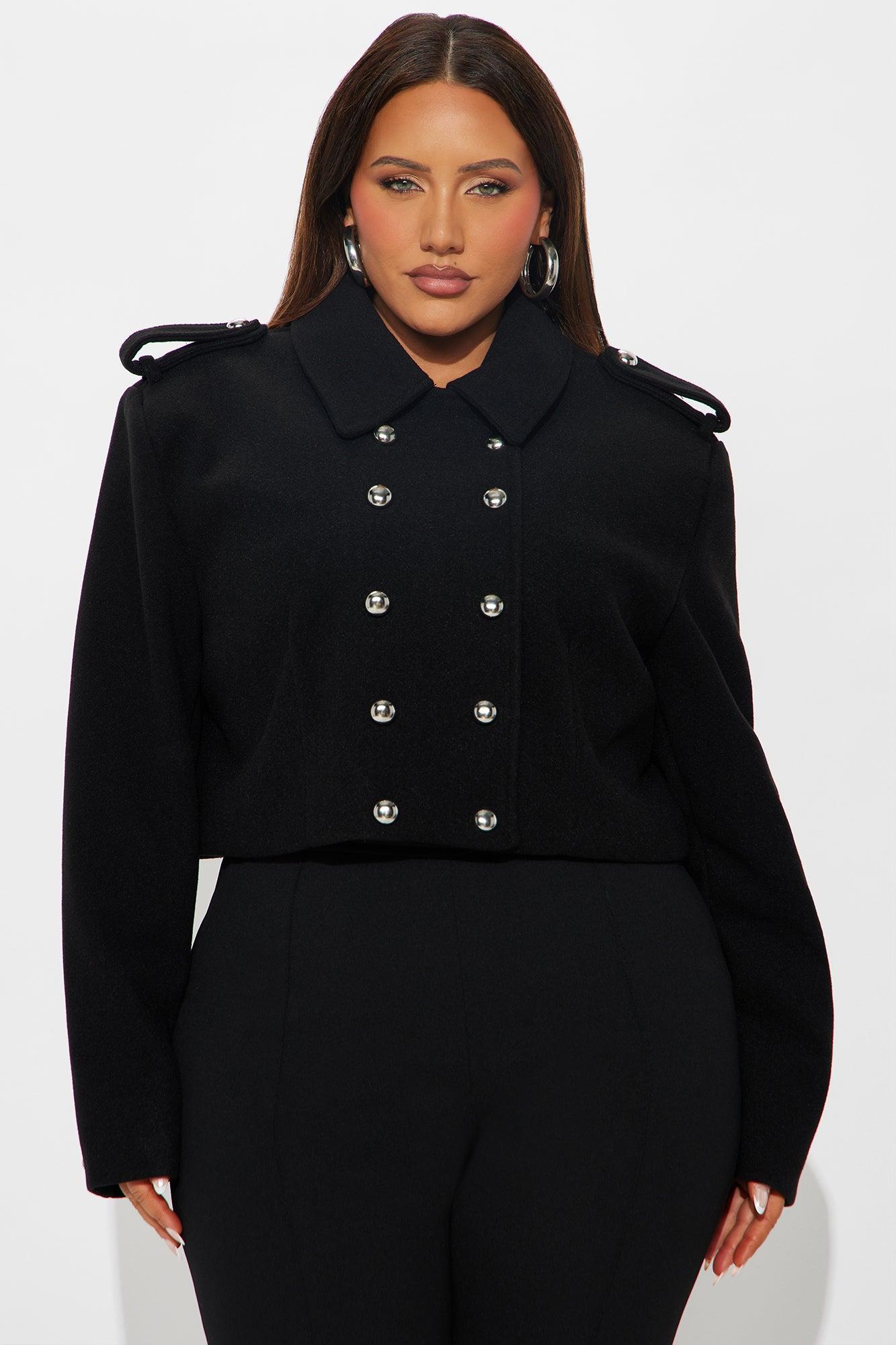 Available In Black And Olive. Coat Collar Neckline Long Sleeves W/ Button Detail Double Breasted Fully Lined Cropped Self: 100% Polyester Lining: 100% Polyester Imported California Proposition 65WARNING: Cancer and Reproductive Harm - www.P65Warnings.ca.gov.