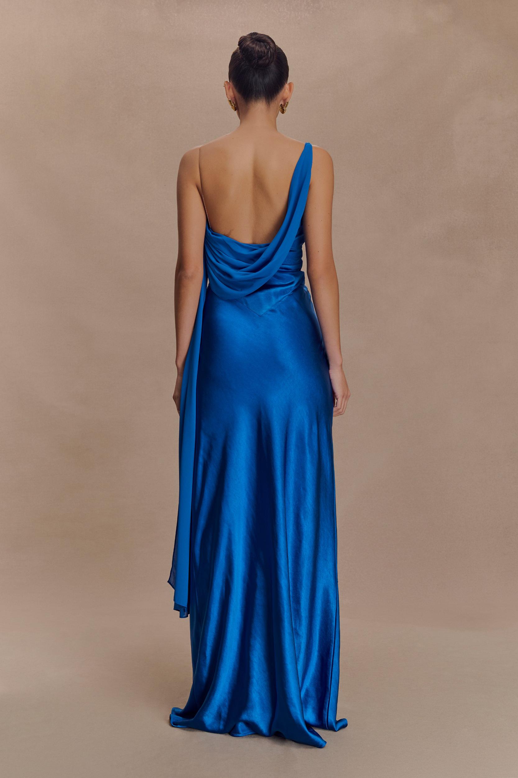 Soft drape, strong entrance. The CARAH Satin and Chiffon Maxi Dress is the epitome of modern romance. Cut on the bias for a naturally flattering fit, this slip-style silhouette features a curved neckline and fluid satin finish that skims the body with ease. Draped chiffon sashes cascade across the front and back, adding movement and dimension from every angle. Fully lined and finished with an invisible zip for a seamless look, this dress is your go-to for elevated evenings and elegant occasions.