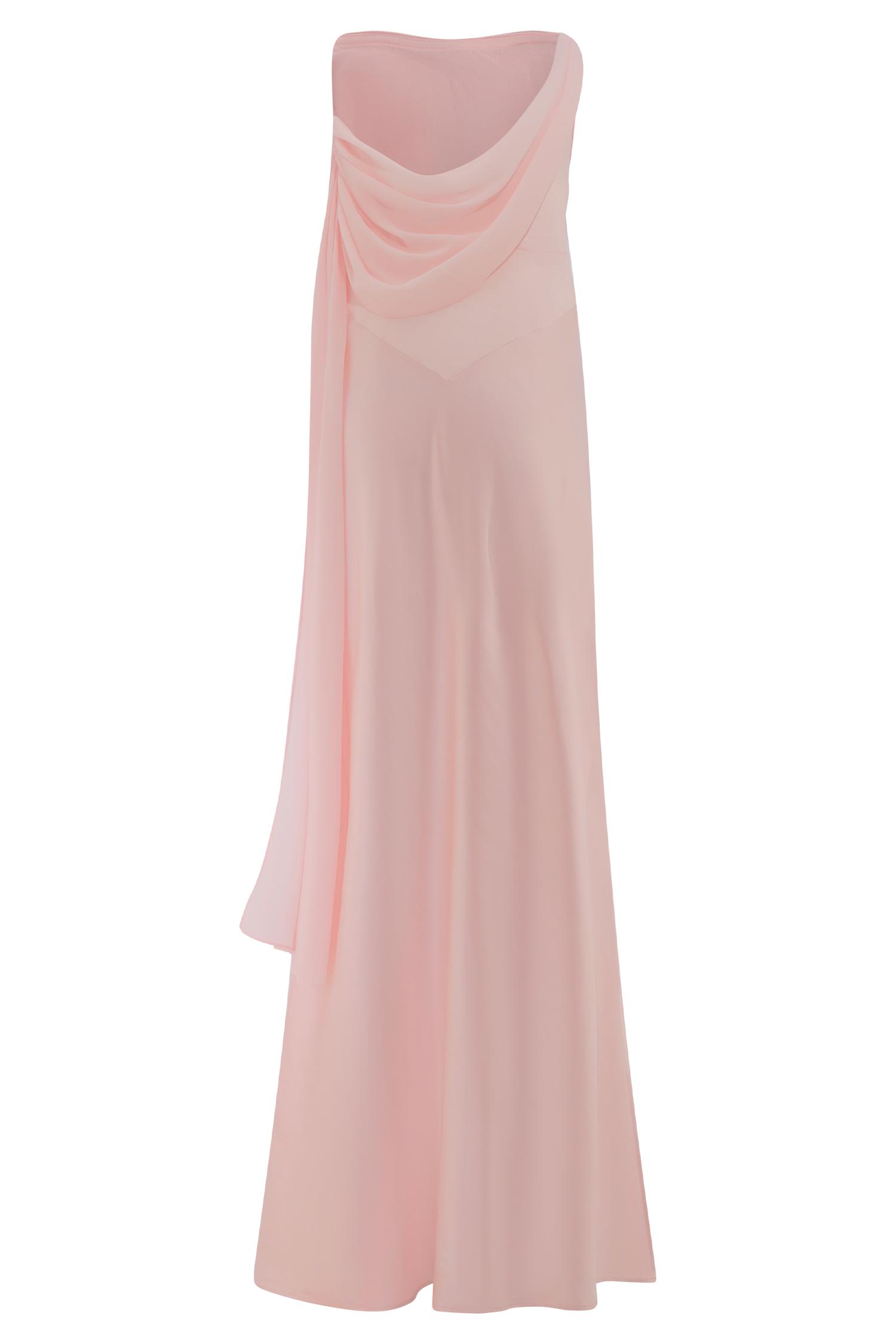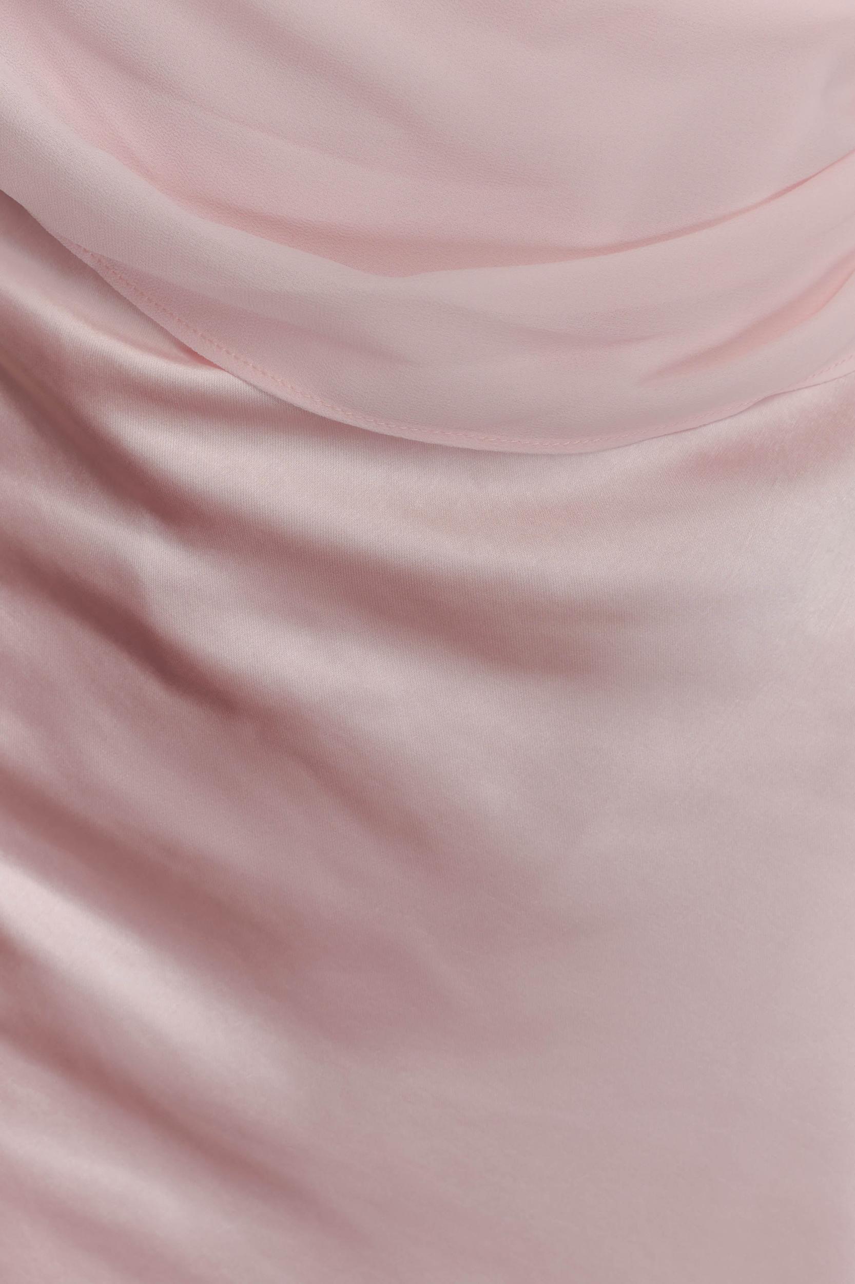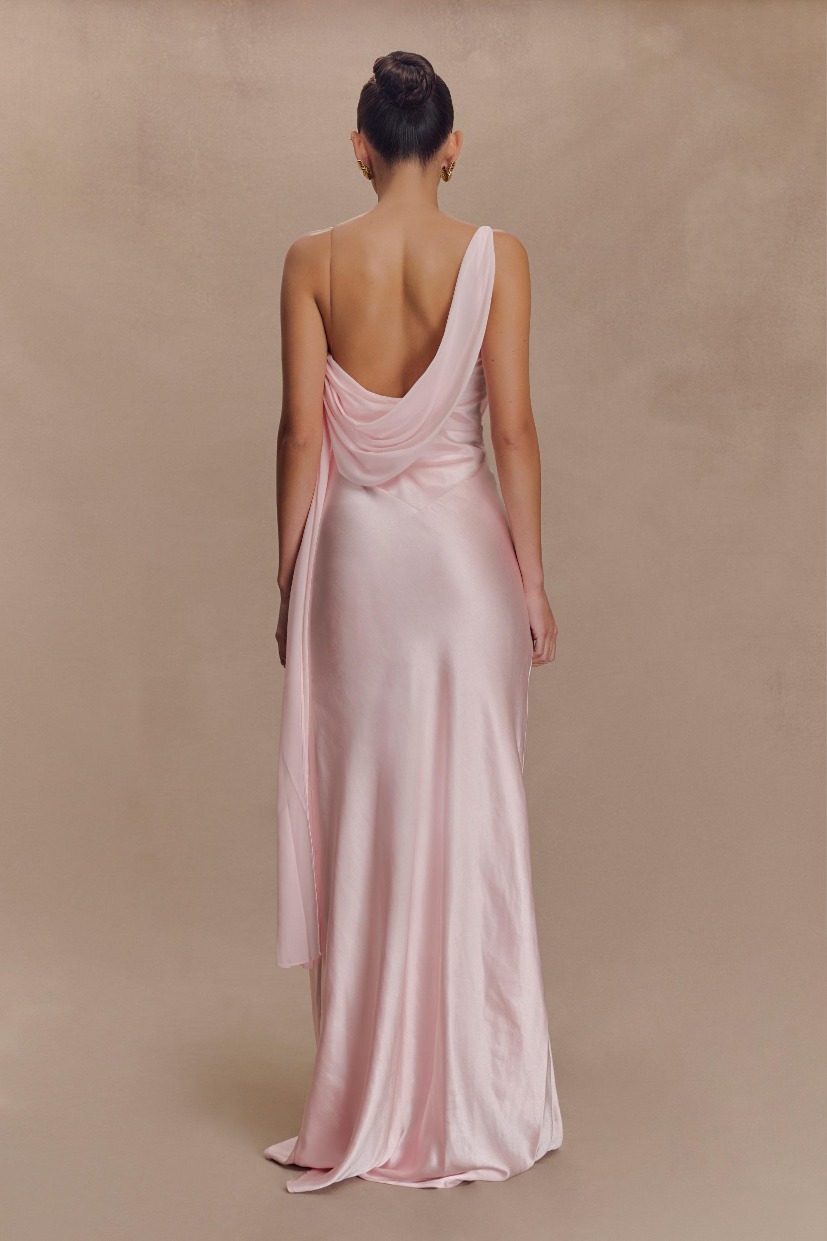 Soft drape, strong entrance. The CARAH Satin and Chiffon Maxi Dress is the epitome of modern romance. Cut on the bias for a naturally flattering fit, this slip-style silhouette features a curved neckline and fluid satin finish that skims the body with ease. Draped chiffon sashes cascade across the front and back, adding movement and dimension from every angle. Fully lined and finished with an invisible zip for a seamless look, this dress is your go-to for elevated evenings and elegant occasions.