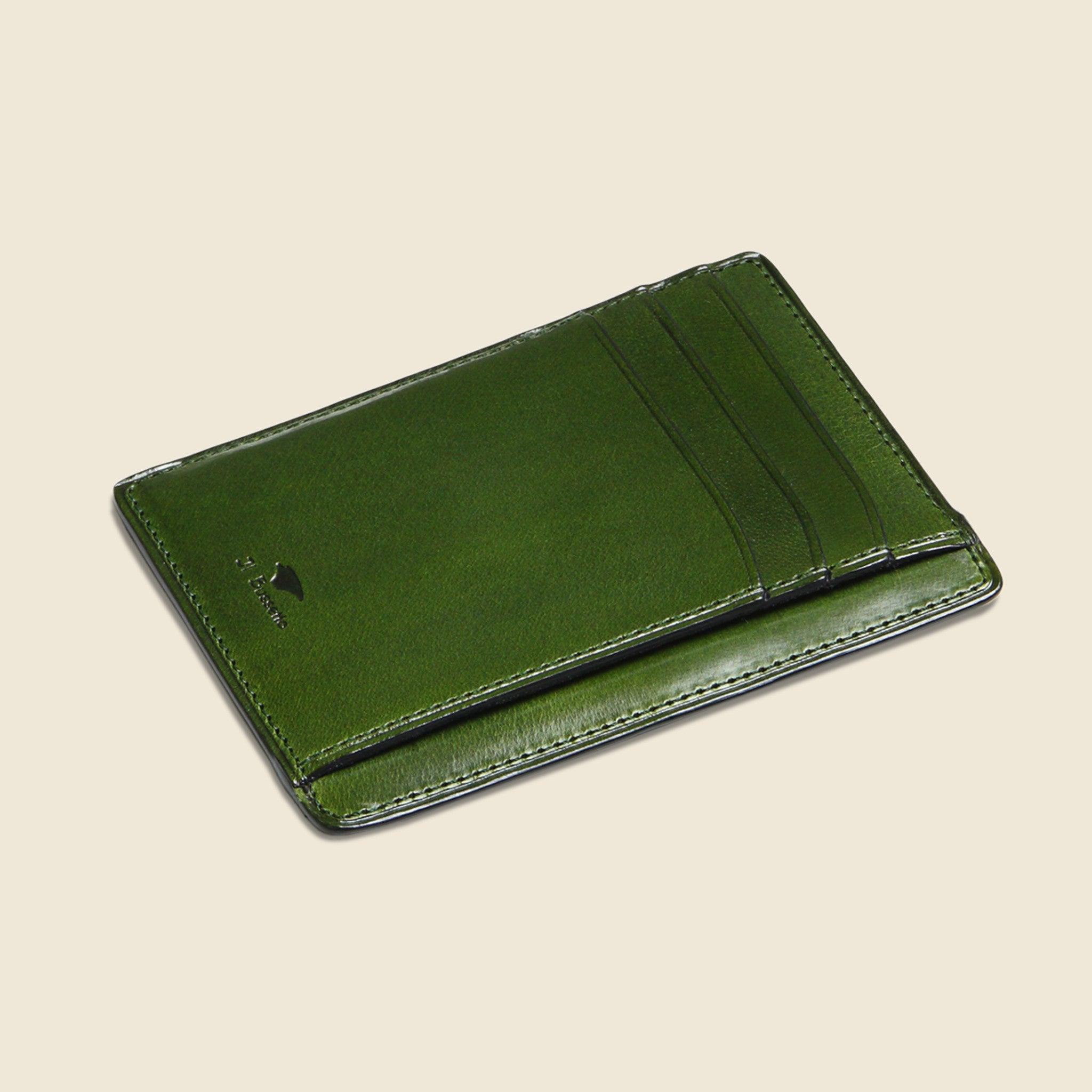Slim, classic Italian-made wallet that’s made to go the distance. Features the ability to hold up to eight cards or folded cash in a compact, veg-tanned card case design. Il Bussetto's rich history of impeccably handcrafted leather goods culminates in an incredible assortment of functional wallets and cardholders. Vegetable-tanned leather Card case design Hand-painted with natural colors One central slip pocket and four card slots Made in Italy Dimensions: 4.33" x 3.15"
