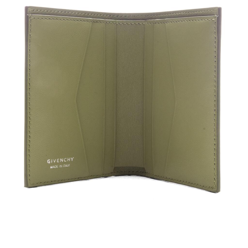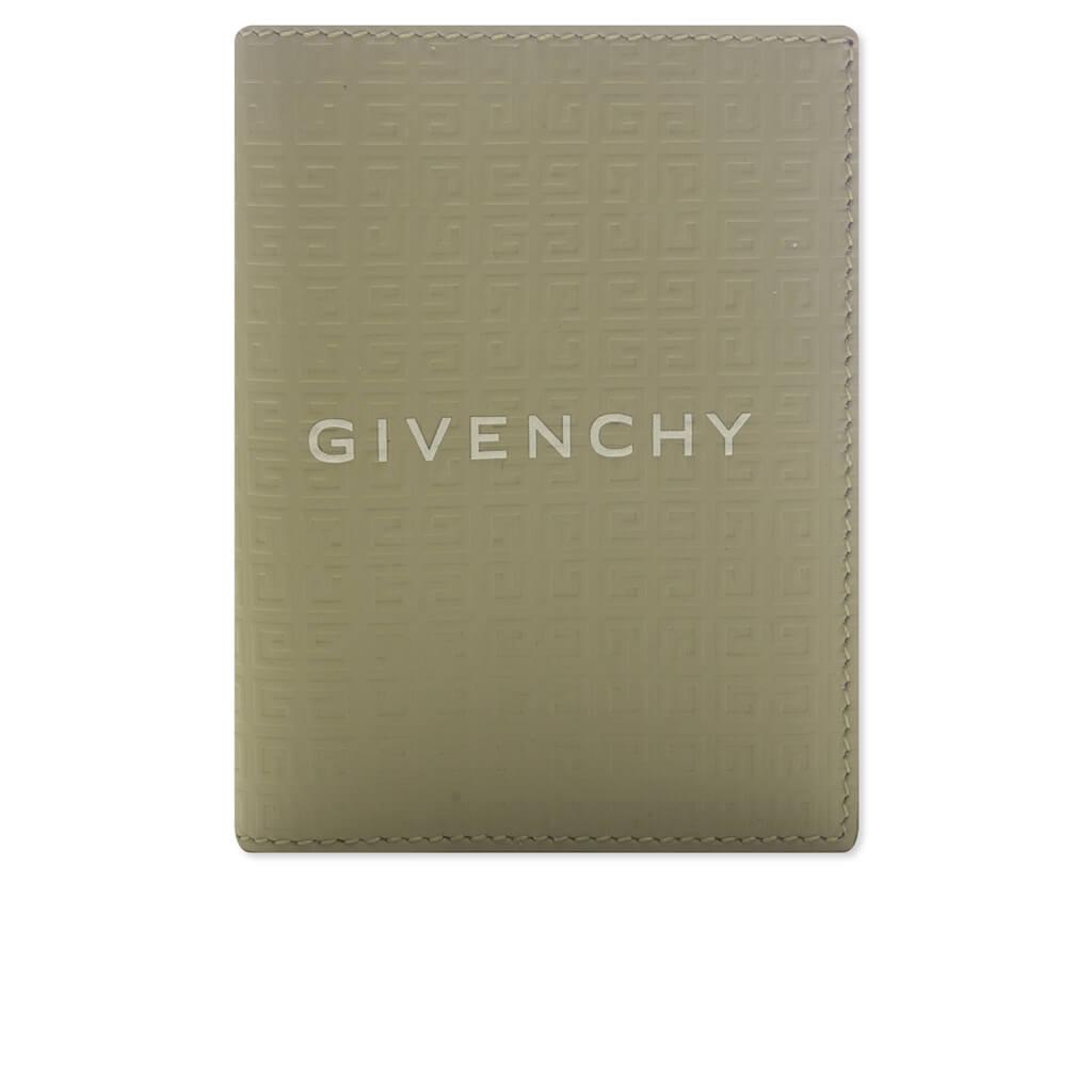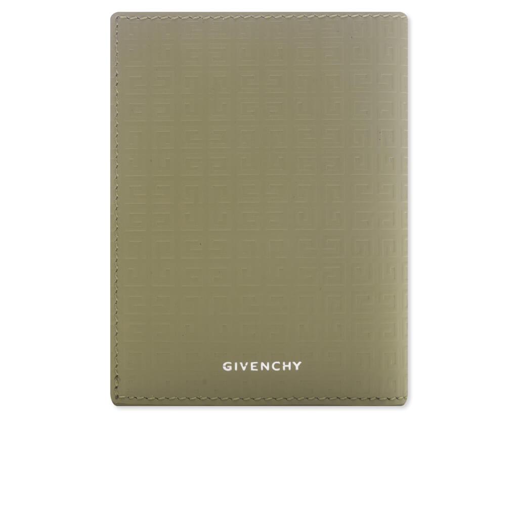 The Card Holder 6cc in Khaki is crafted from premium calfskin leather, featuring a subtle 4G all-over embossed pattern for a textured finish. A reflective GIVENCHY signature on the outside adds a contemporary touch, while the silvery debossed logo on the inside complements the design. With six card slots and a bill pocket, this card holder offers both functionality and a refined aesthetic. 100% Calfskin leather Small 4G all-over embossed pattern Reflective GIVENCHY signature on the outside Silvery GIVENCHY signature debossed on the inside One bill pocket and six card slots Style No: BK608MK1LQ305