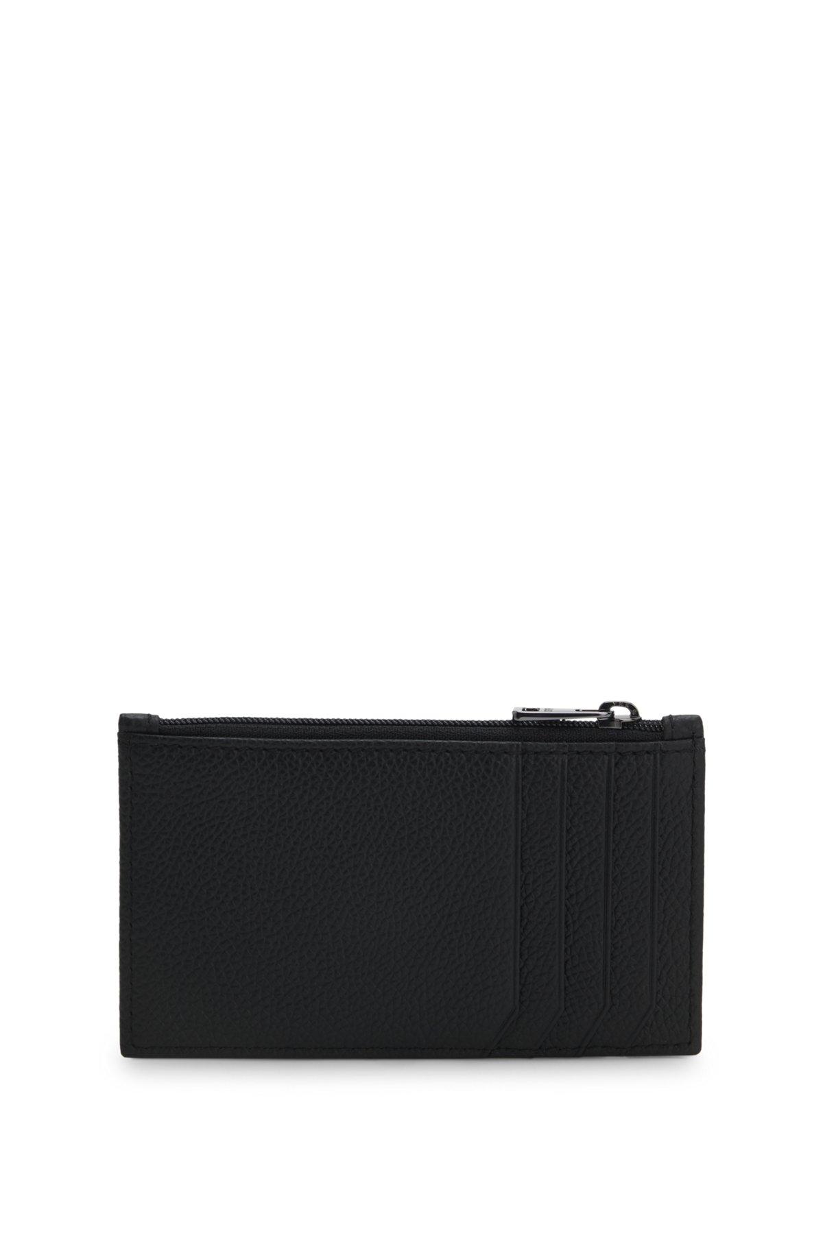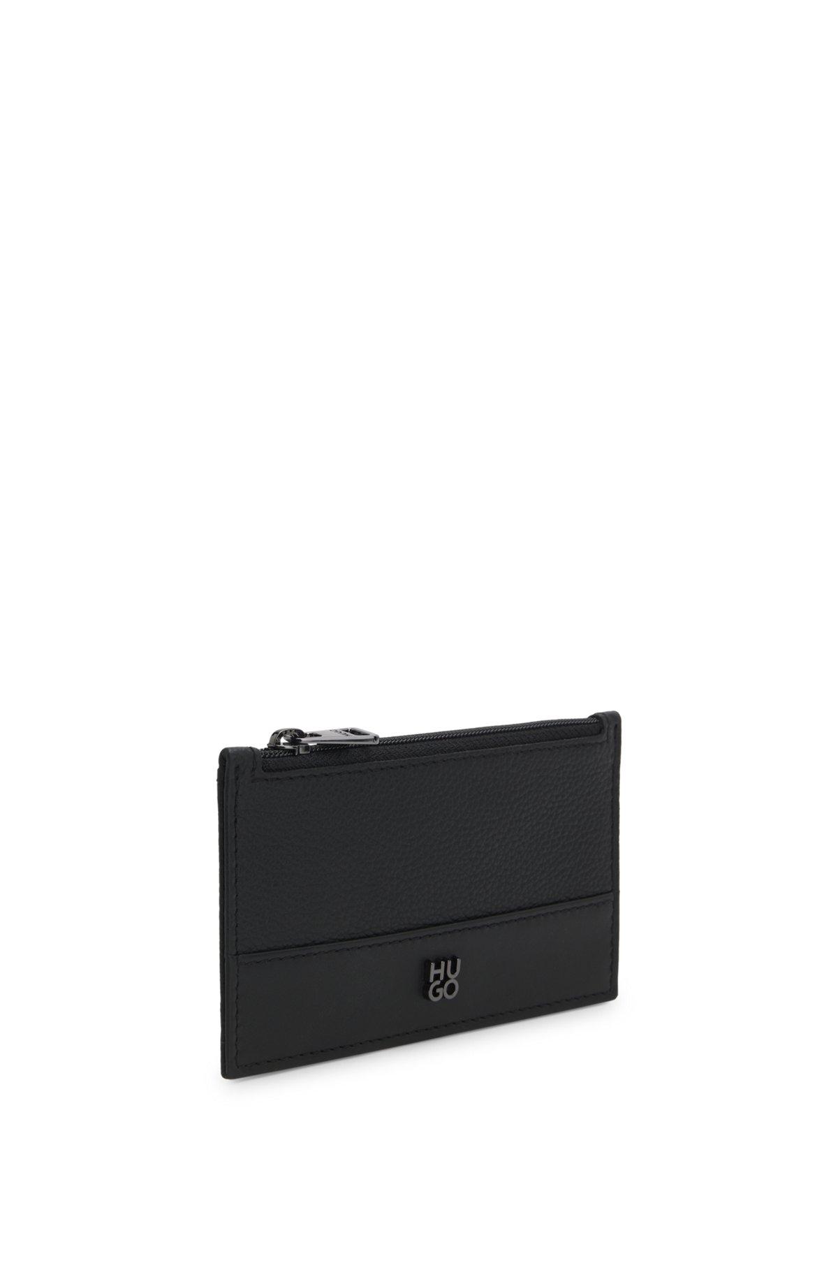 With a zipped coin pocket, this HUGO Menswear card holder means you can travel light. Crafted in smooth and grained leather. Gunmetal stacked logo. Measurements: 7.5 x 12.7cm