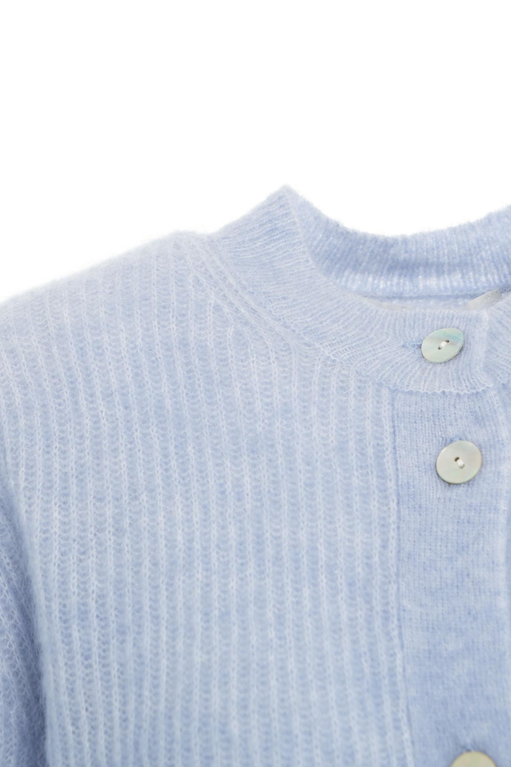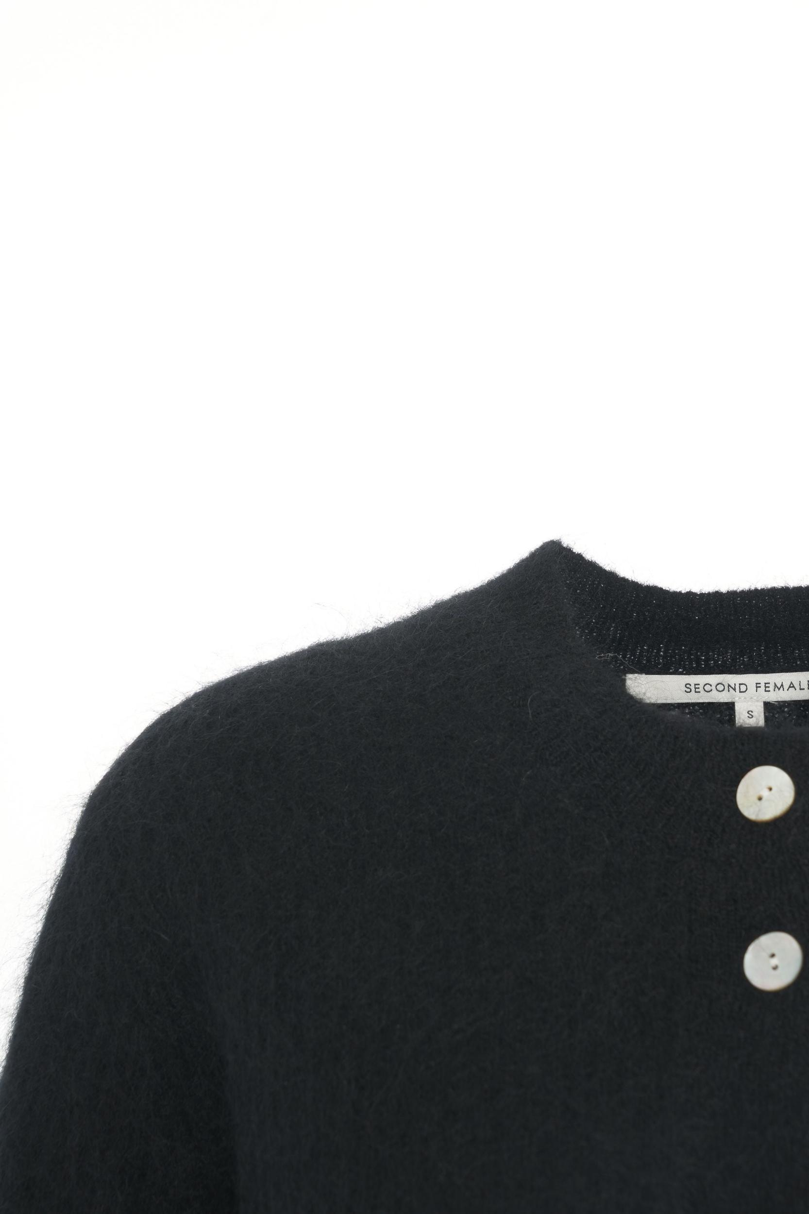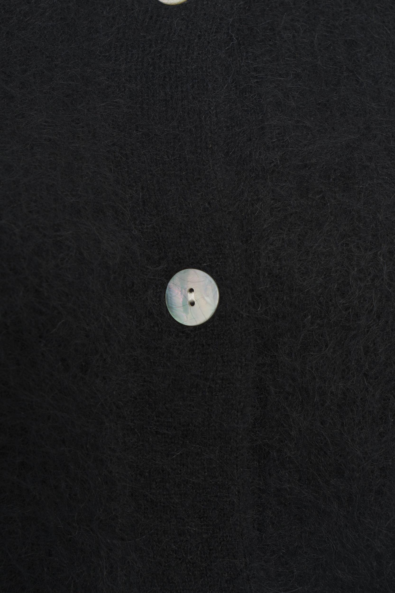 The 'Andrea' cardigan by Second Female impresses with its soft knit and short silhouette. It features a round neckline and three-quarter sleeves, giving it a light, modern appeal. A full-length button closure on the front stylishly completes the design. This versatile knit piece is ideal for layering.Knit textileRound necklineThree-quarter sleevesButton closureLoose FitRibbed hemRibbed cuffsRibbed collar