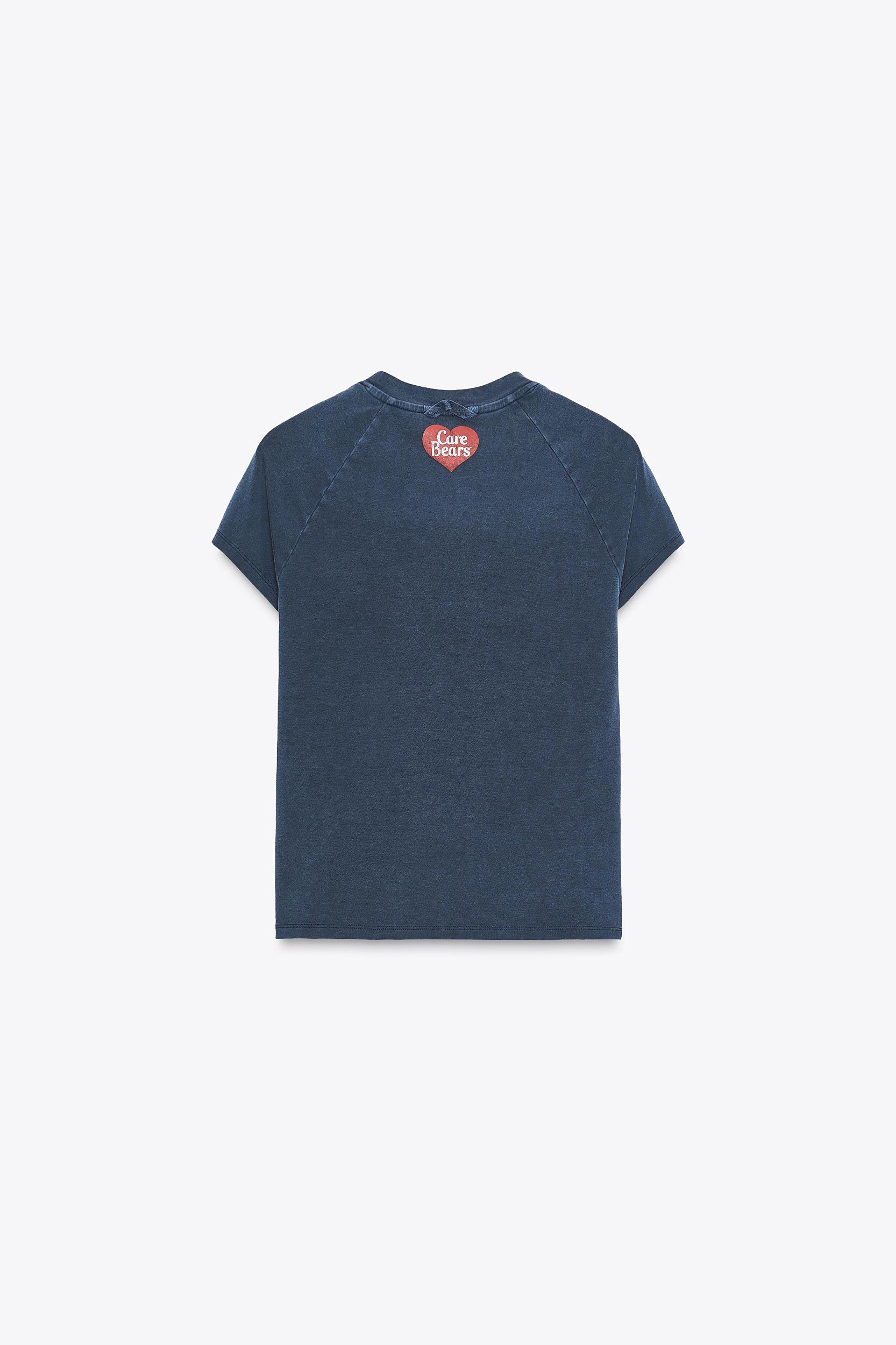 T-shirt made of washed-effect cotton. Round neck and short sleeves. Print and text detail on the front and back with Care Bears™.
