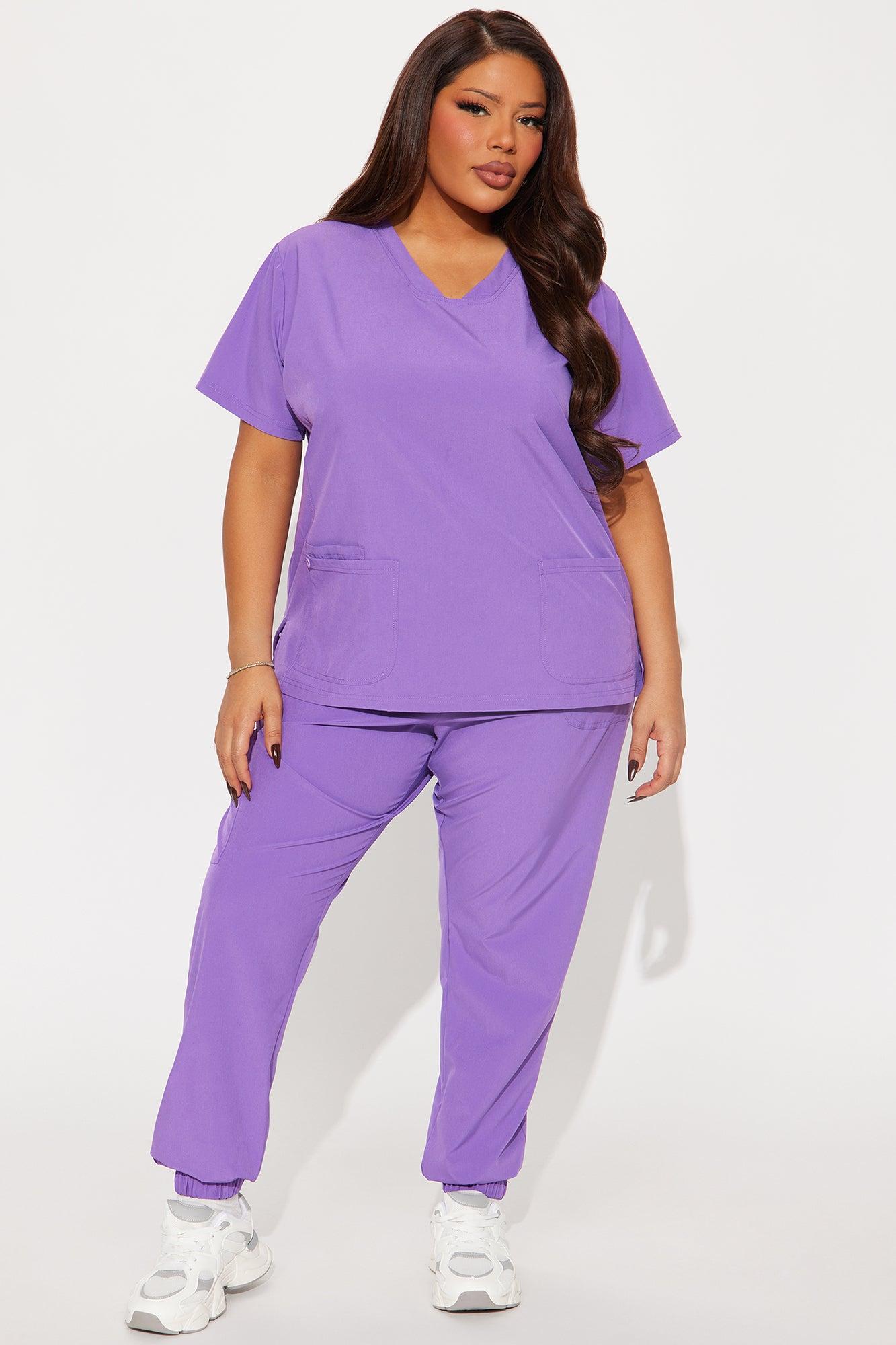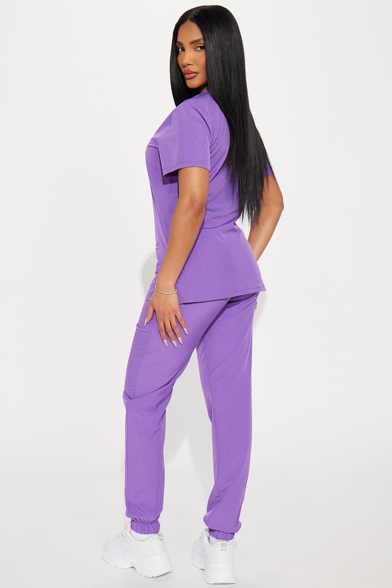 Available In Black, Coral, Navy, And Purple. Uniform Scrub Set Short Sleeve Top V Neck Front Pockets Matching Jogger Pants Elastic Waistband Drawstring Side Pocket Jogger Cuff Hem 93% Polyester 7% Spandex Imported California Proposition 65 WARNING: Cancer and Reproductive Harm - www.P65Warnings.ca.gov.