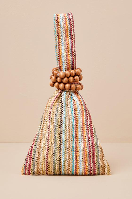 With a sophisticated presence and a fun striped design, this woven raffia wristlet by Dolce Vita lends the chicest finish to your favorite summer ensembles. The triangle-style silhouette features a looped top handle with wood-look beaded detailing, followed by a zippered side that opens to reveal a roomy interior with a convenient sidewall pocket.
