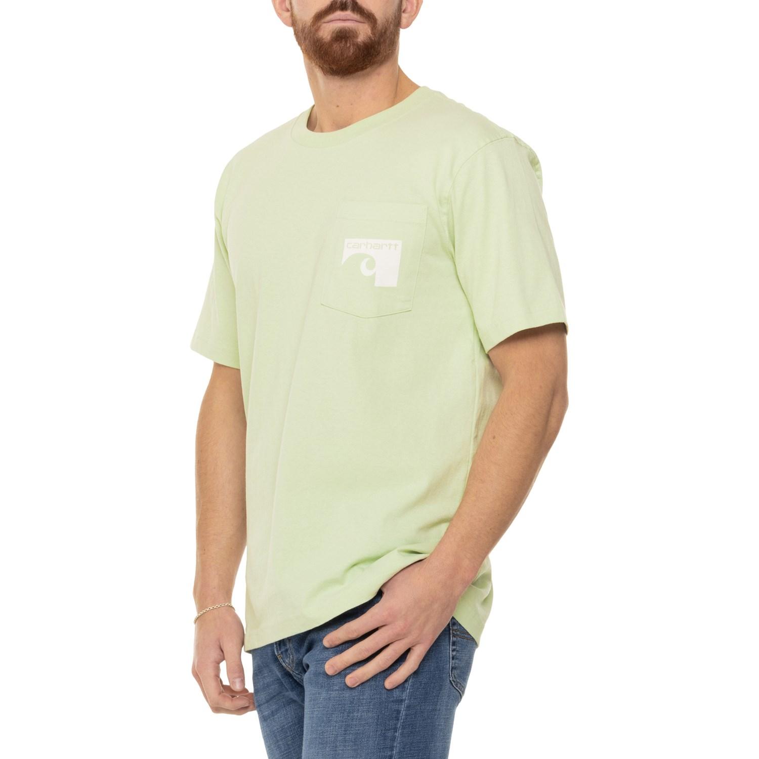 Carhartt 106148 Relaxed Fit Heavyweight Logo Graphic T-Shirt - Short Sleeve, Factory Seconds in Vivid Yellow Heather, Bluestone, Tender Greens at Sierra. Celebrating 30 Years Of Exploring.
