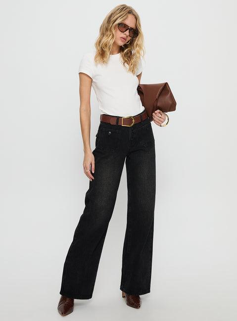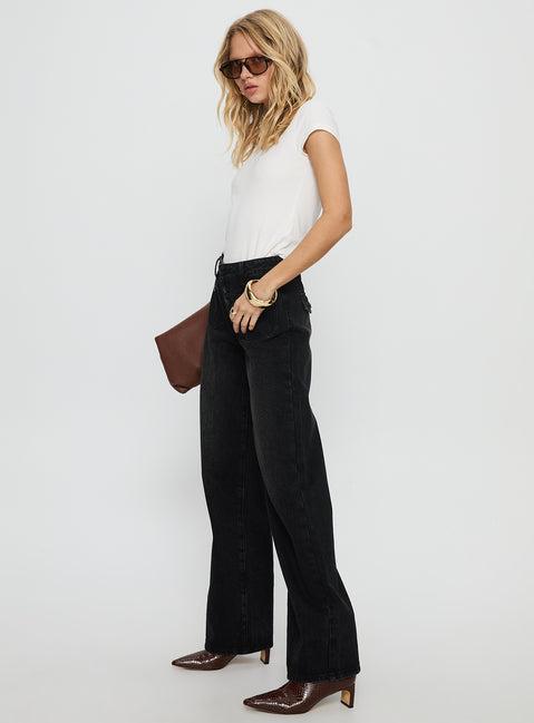 Carianne Low Rise Wide Leg Jeans Washed Black