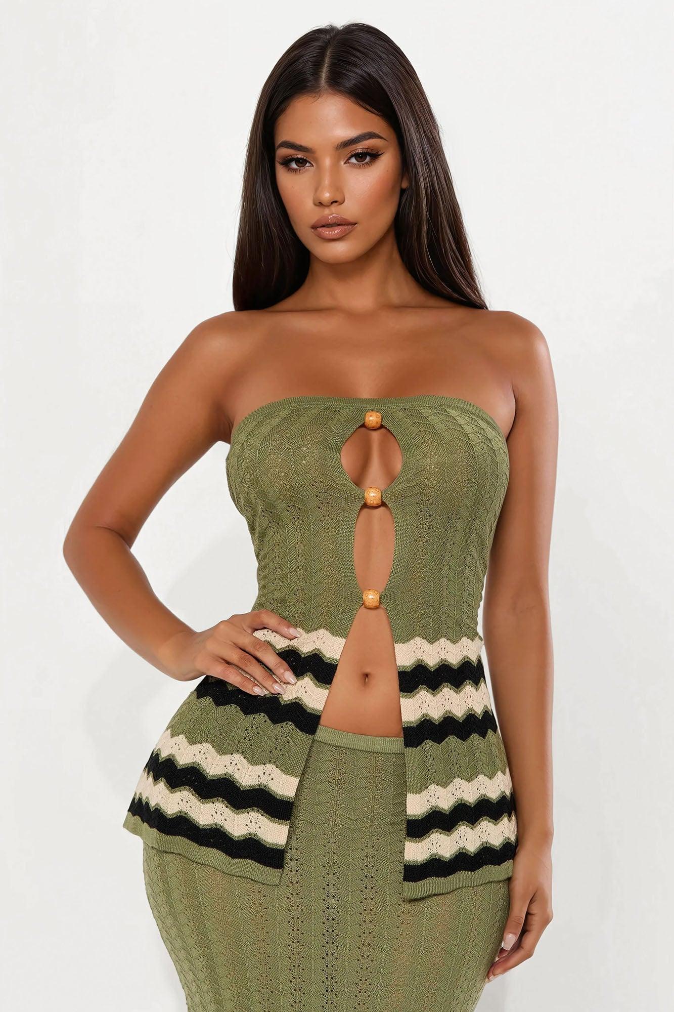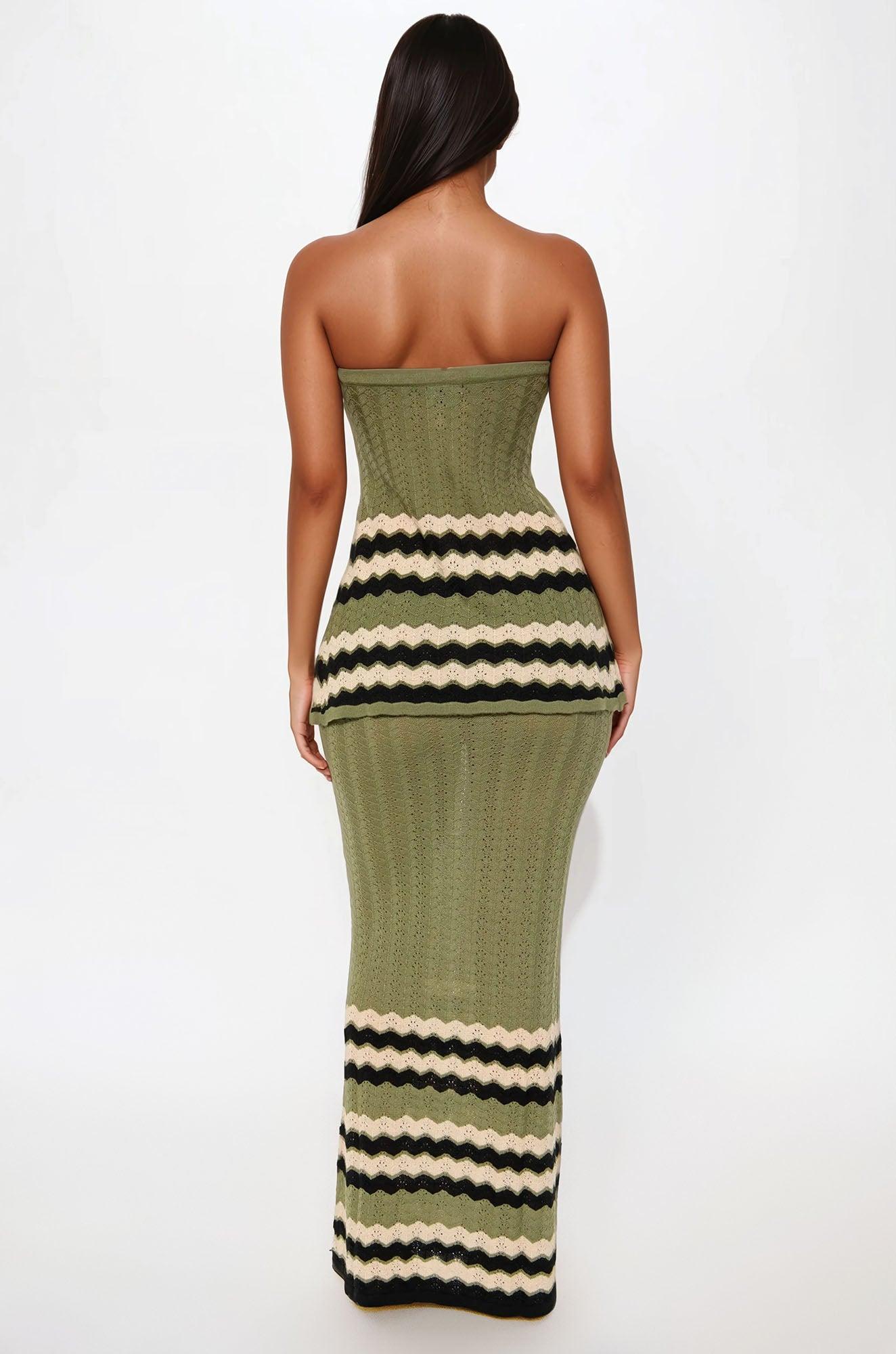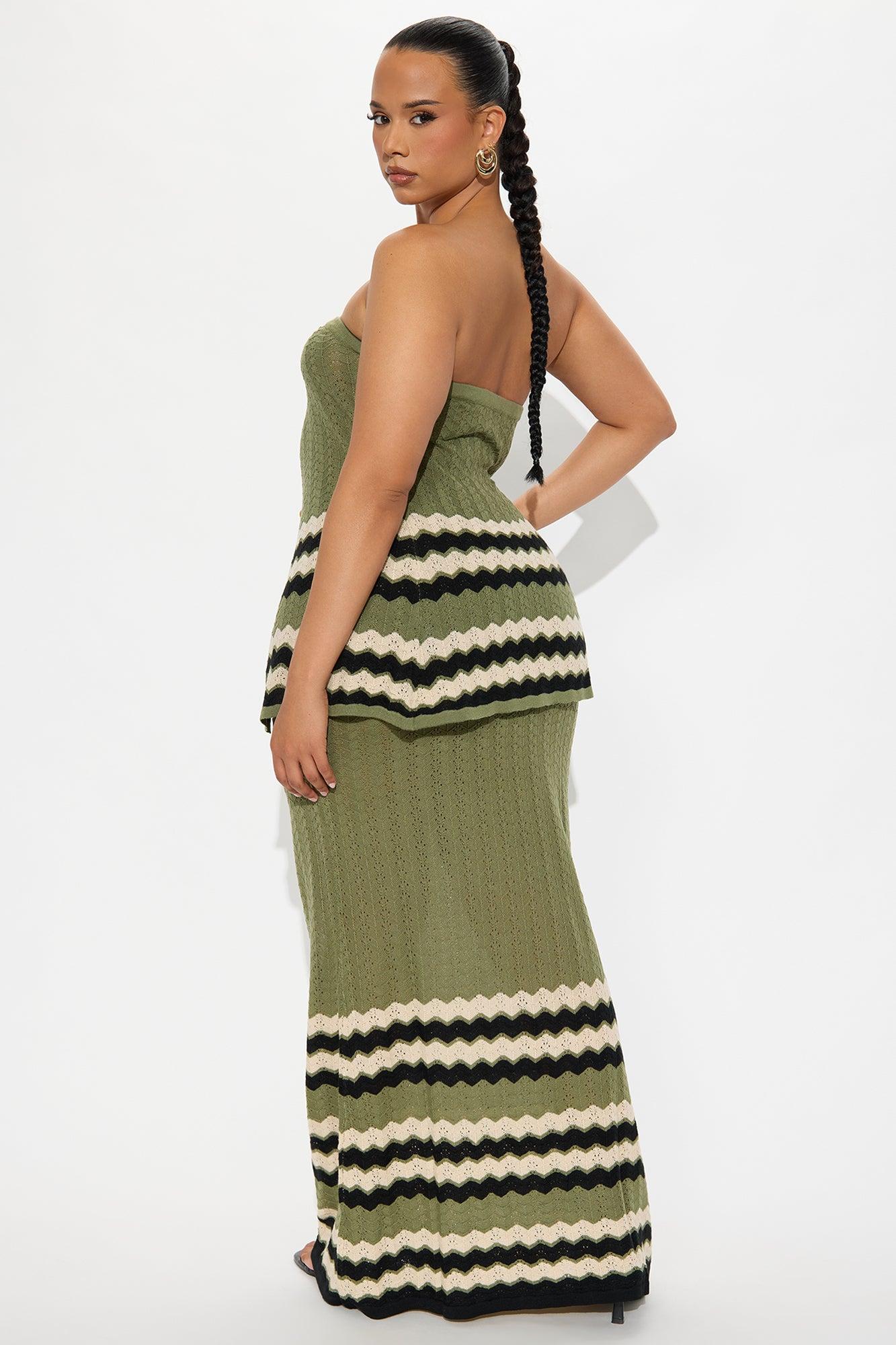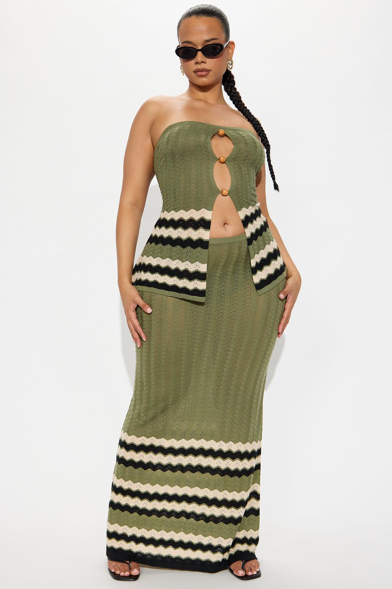 Caribbean Chic Crochet Maxi Skirt Set - Olive/combo Female