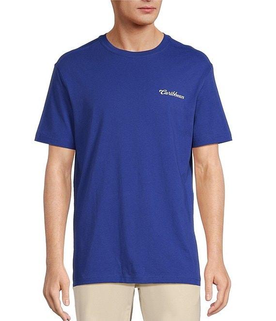 From Caribbean, this t-shirt features: Crew neckline Short sleeves Small screen print logo on the left side of the chest Large screen printed design on the back Relaxed fit Pullover construction Cotton Machine wash/tumble dry Imported.