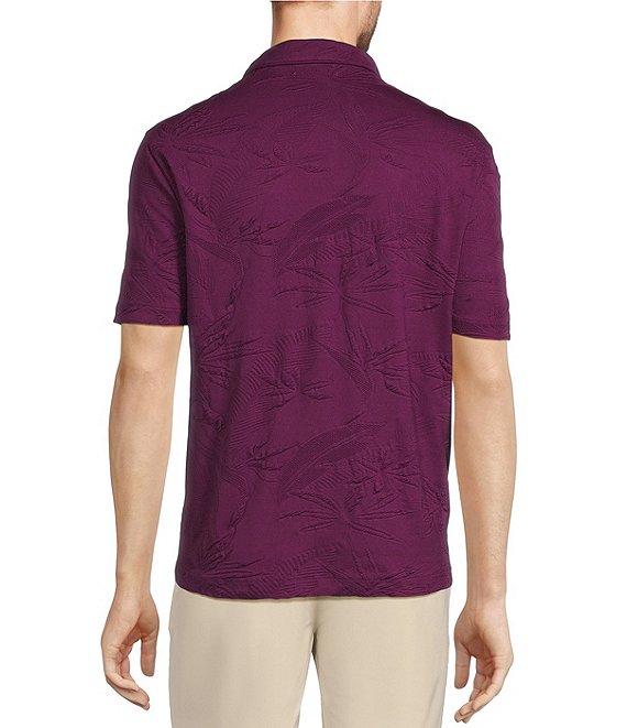 Caribbean Textured Floral Jacquard Short Sleeve Polo Shirt