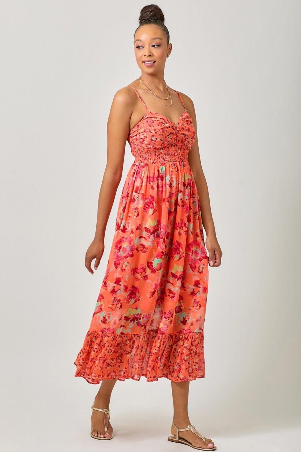 Seaside Soiree Orange Tropical Print Cotton Maxi Dress