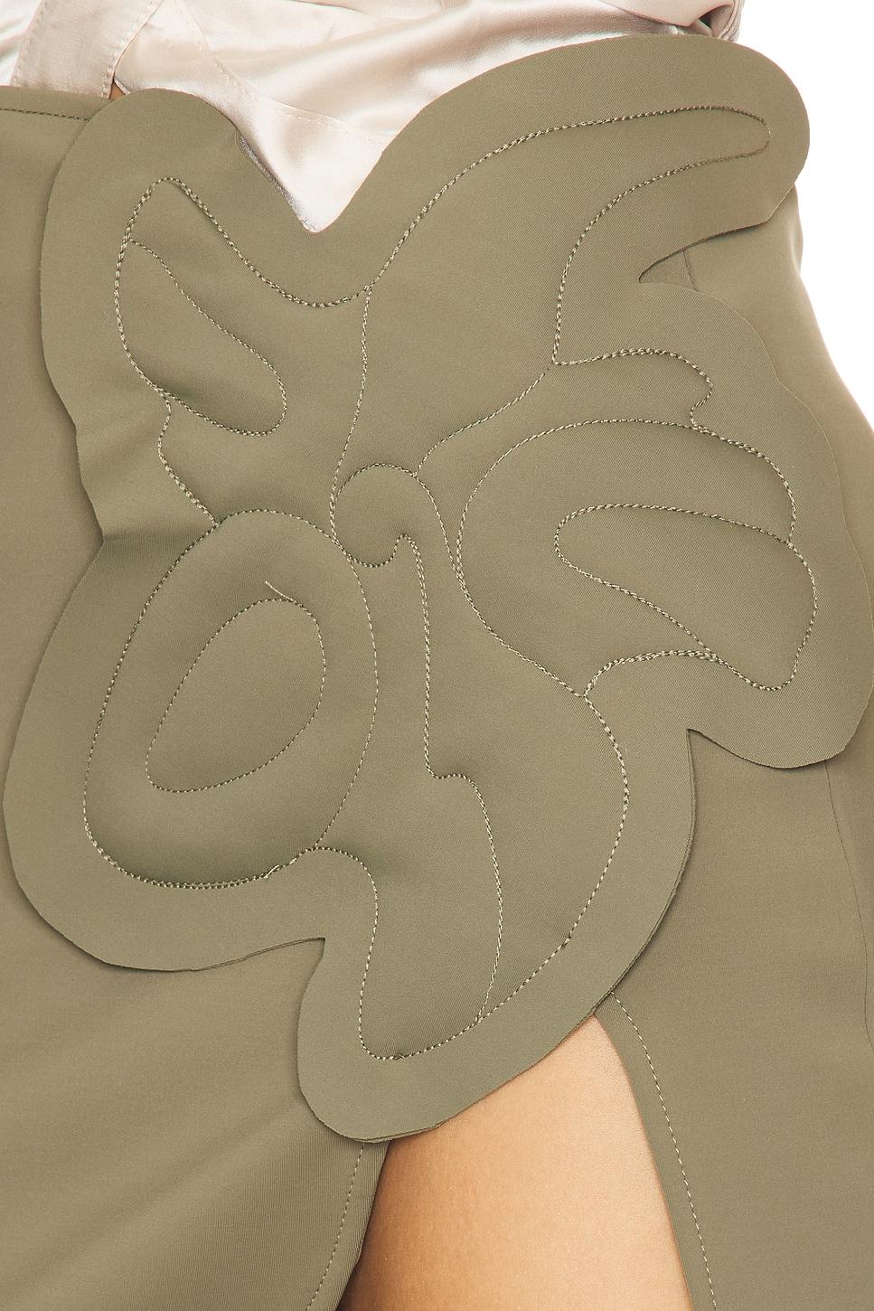 75% polyamide, 25% elastane. Made in China. Dry clean only. Fully lined. Hidden side zipper closure. Raised detail on hip. Raw-cut hem. Waist to shortest hem measures approx 10" and to longest hem approx 14" in length. Revolve Style No. MFAR-WQ19. Manufacturer Style No. 3563.