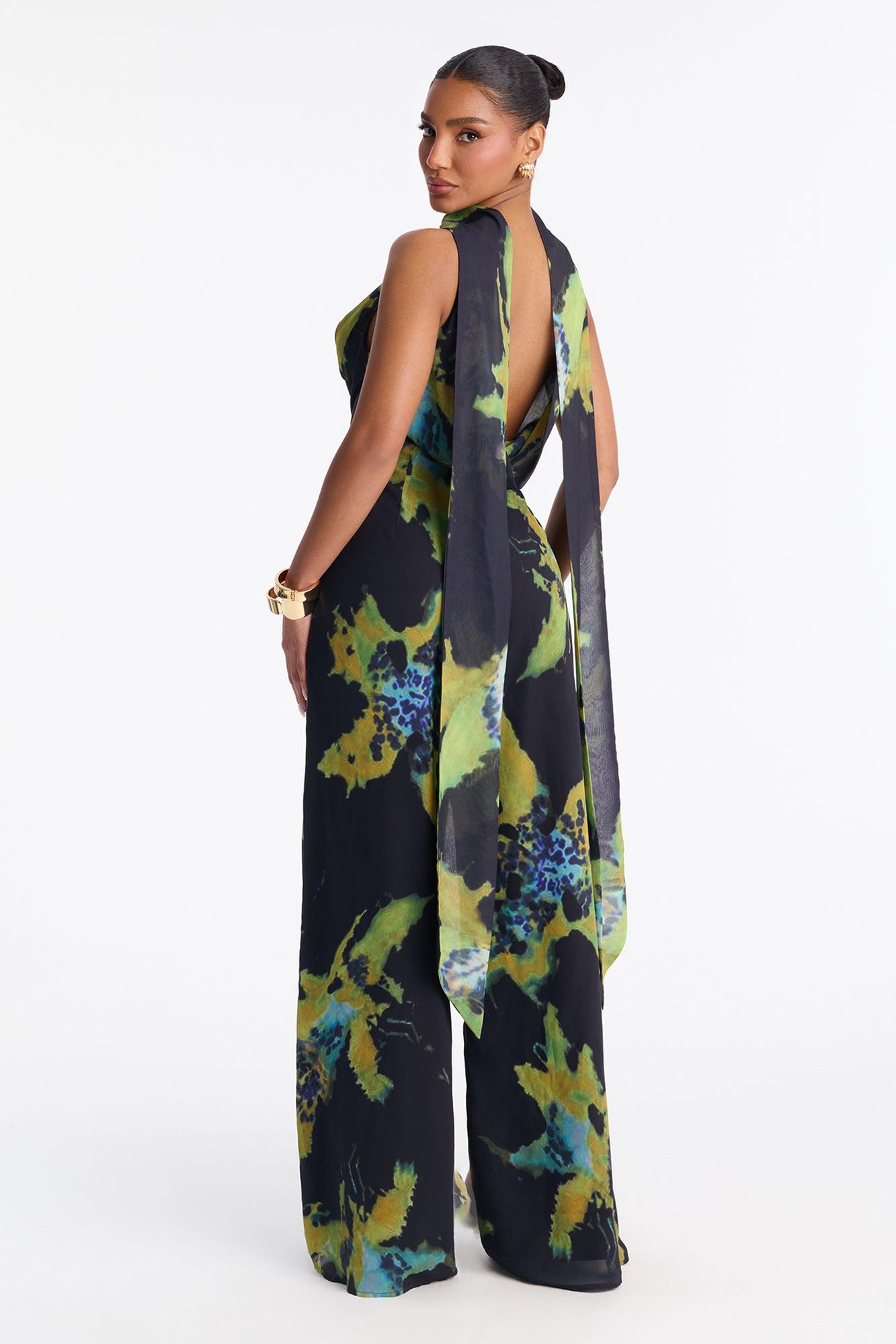 Carli Chiffon Cowl Neck Jumpsuit - Black/Green Female