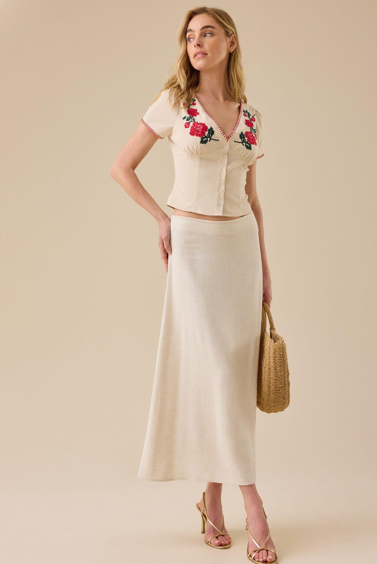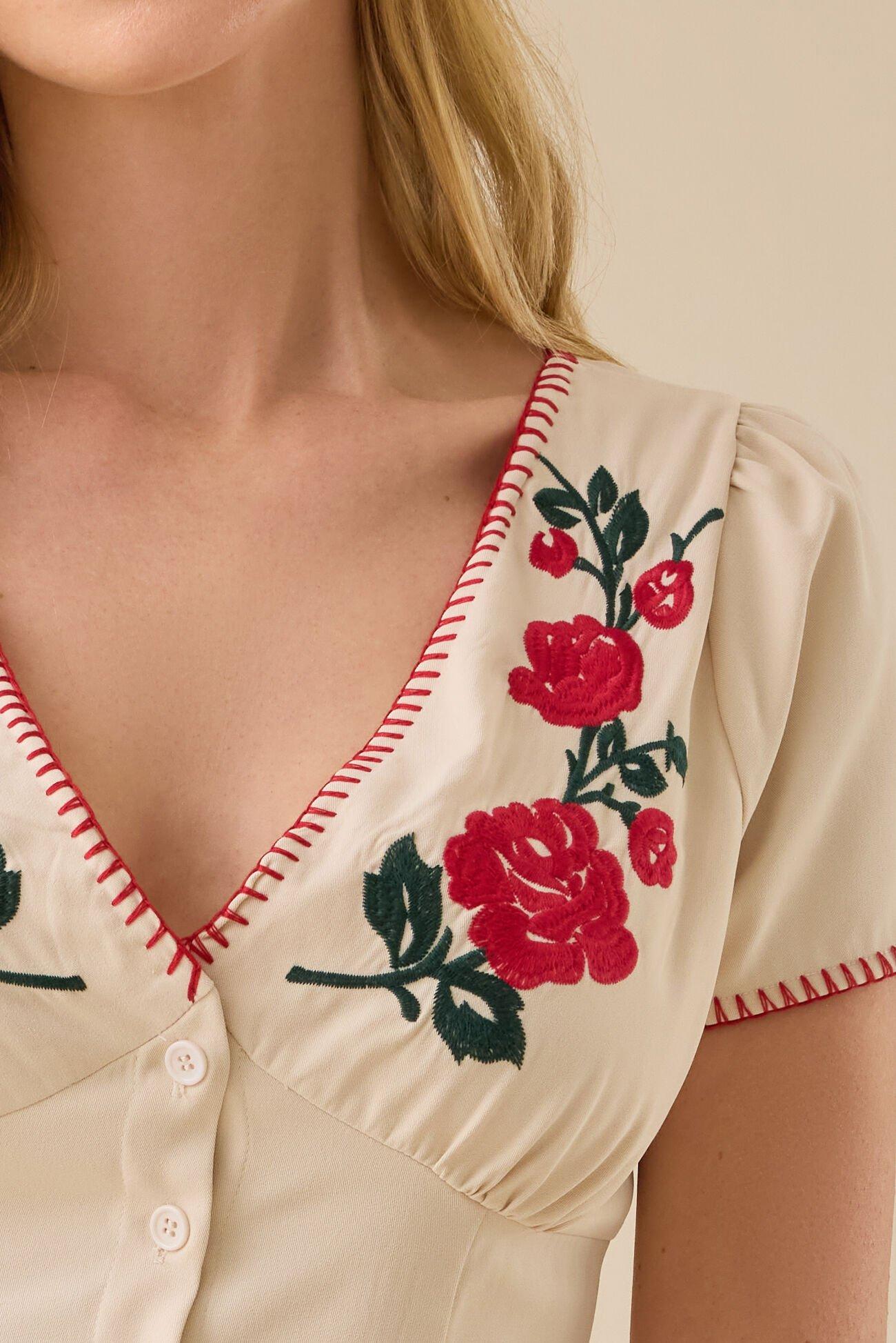 Carlisle Rose Embroidered Top