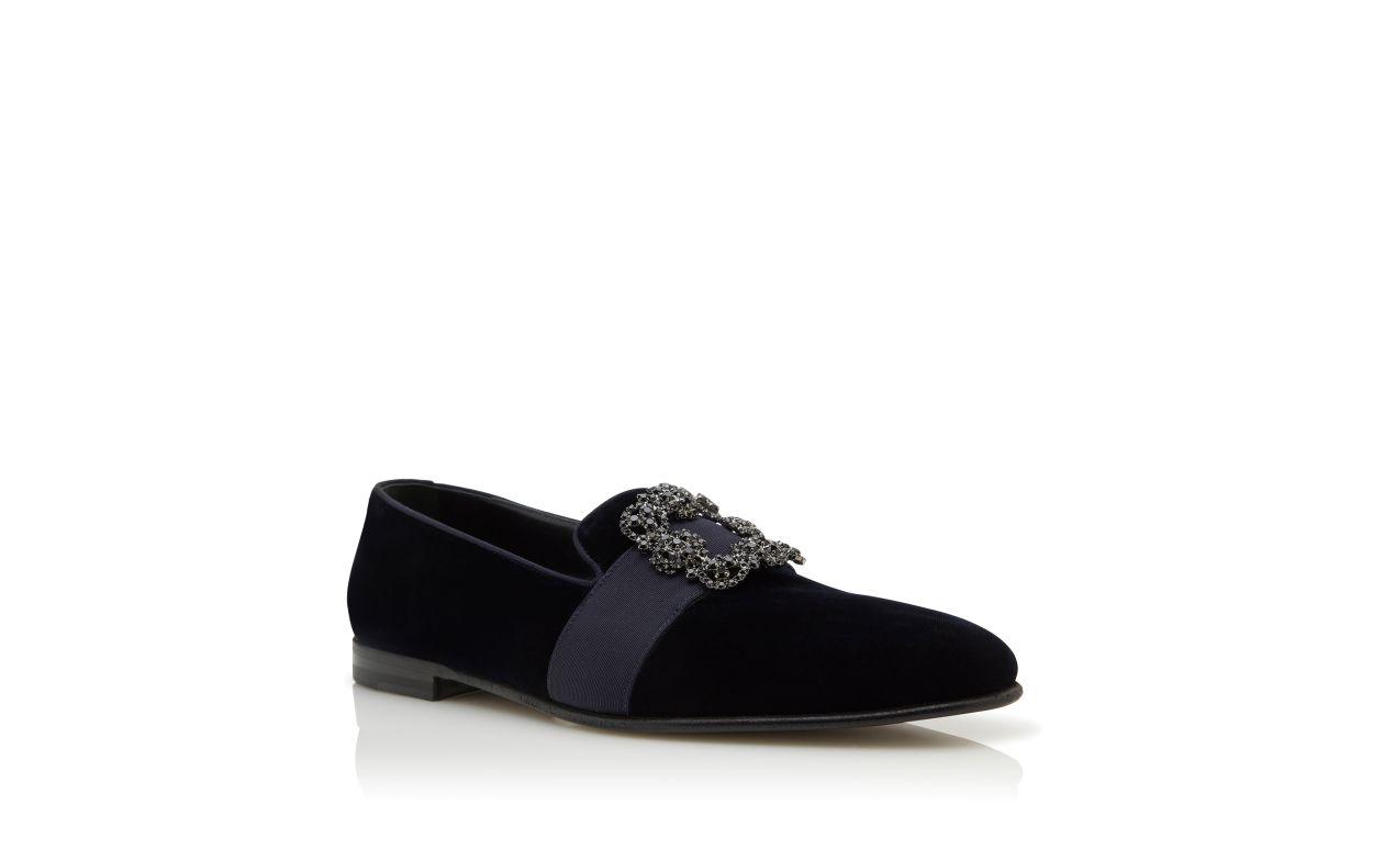 CARLTON Dark Blue Velvet Jewelled Buckle Loafers
