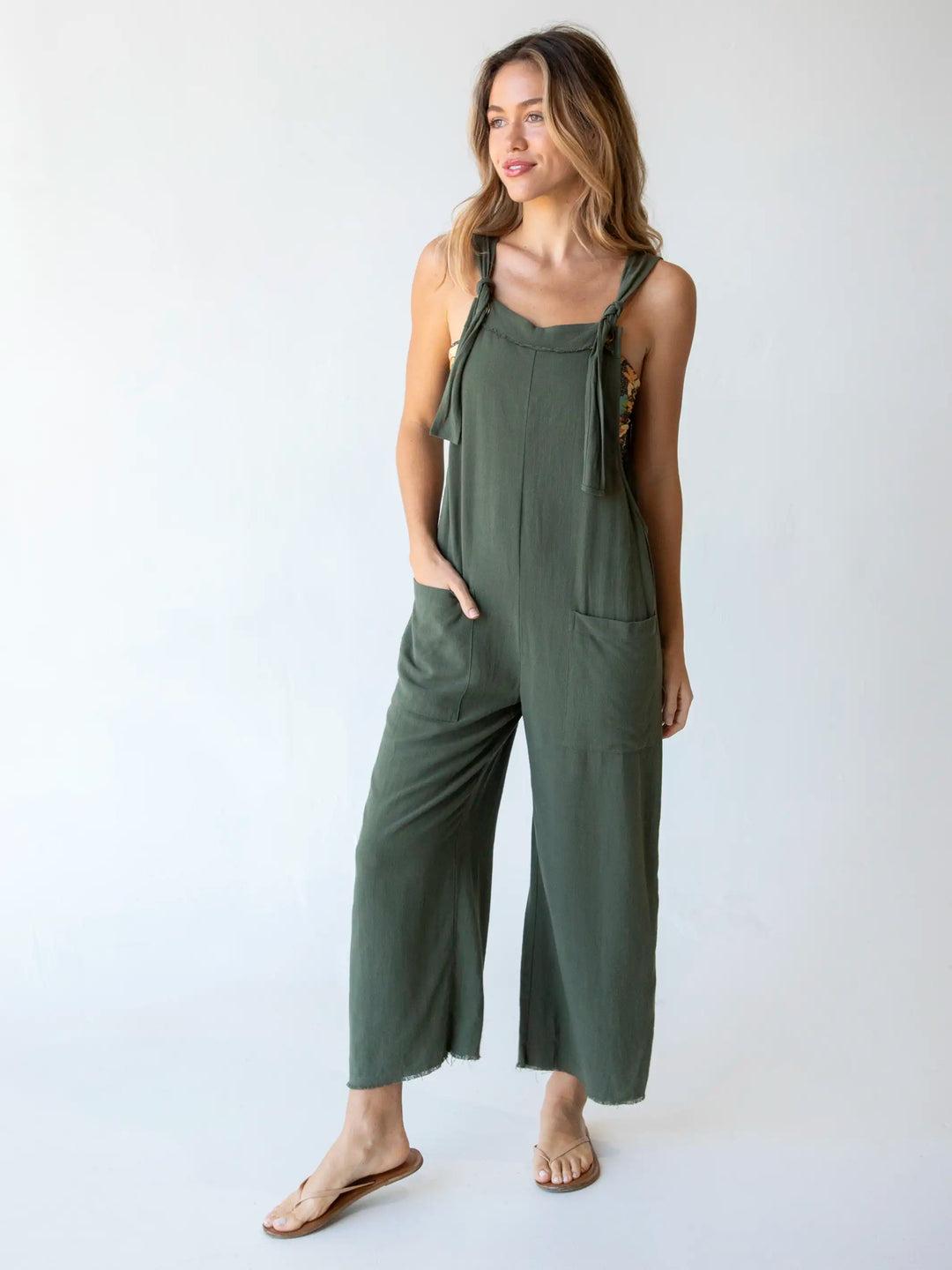 The fun utility vibe! The deep V-neck on the back! Its easy, adjustable straps that tie in the front! And it has pockets!