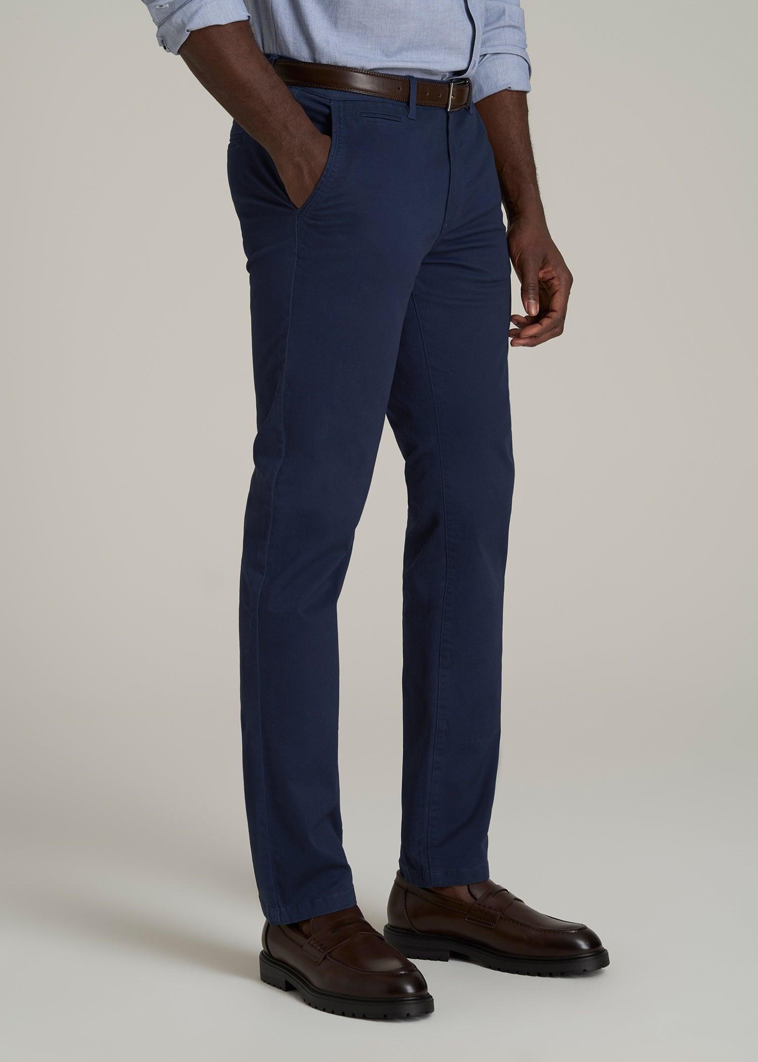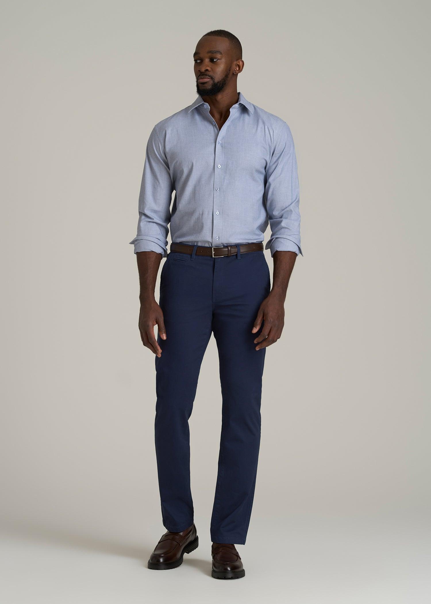 Our tall men's Carman Chinos can be worn with anything, from a fitted tee to a smart blazer. The Carman Chinos are comfortable around the hips and thighs and come in extra-long sizes, crafted specifically for tall men between 6'3” and 7'1”. We always make sure that our pants for tall men not just style well but can be worn no matter the activity. Pants for taller guys are a critical part of any tall man's wardrobe and the Carman Chinos won't disappoint. Constructed with cotton and spandex, these pants for tall men offer the perfect amount of stretch. With a tapered fit, they can be paired with sneakers, loafers, dress shoes, or combat boots.