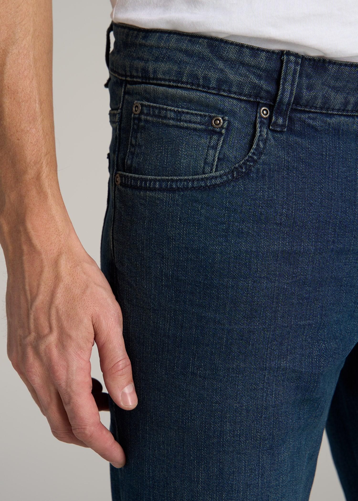 These will become your new favorite men's tall jeans. You've been searching for the perfect pair for years, having to deal with inseams that are way too short and fits that just aren't right for far too long. It's time to leave those days behind. All of our denim is designed for tall guys between 6'3” and 7'1” with proper proportions throughout – because good jeans are about so much more than added length (although we've got that covered, too). We created our Carman style to be the quintessential everyday pair that you can wear with anything. The tapered fit provides enough room in the hips and thighs while the legs come in inseams up to 40”. We sourced a premium cotton-spandex blend that's sturdy with just the right amount of stretch and the heat-set creases along the front provide an authentic worn look for that perfectly lived-in style. Wear these jeans for tall men with a sweatshirt for off-duty days or with a button-up shirt for dinner with friends.