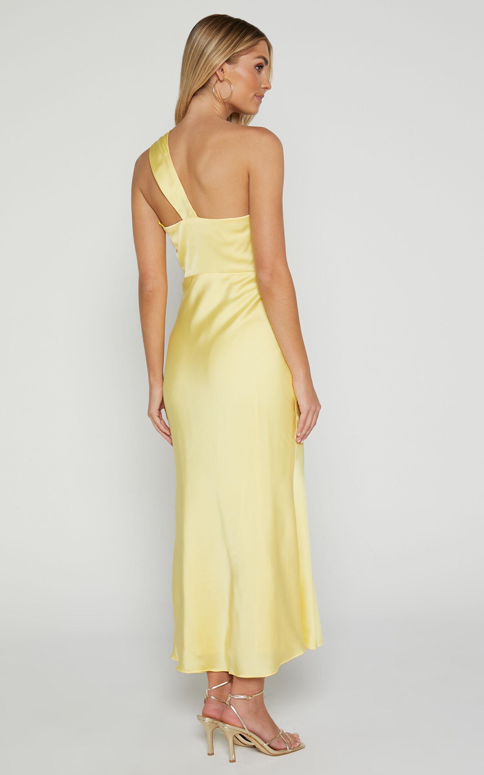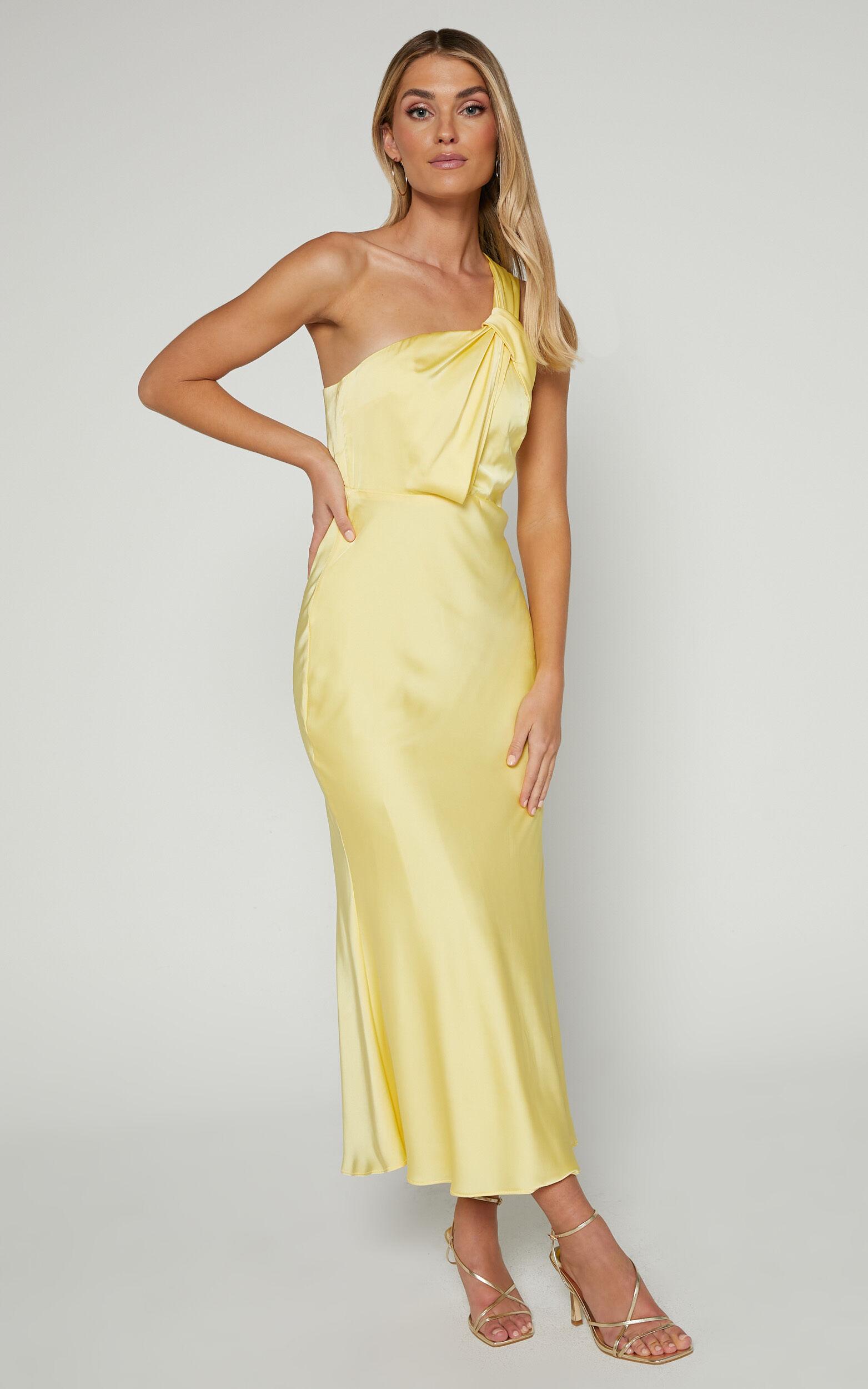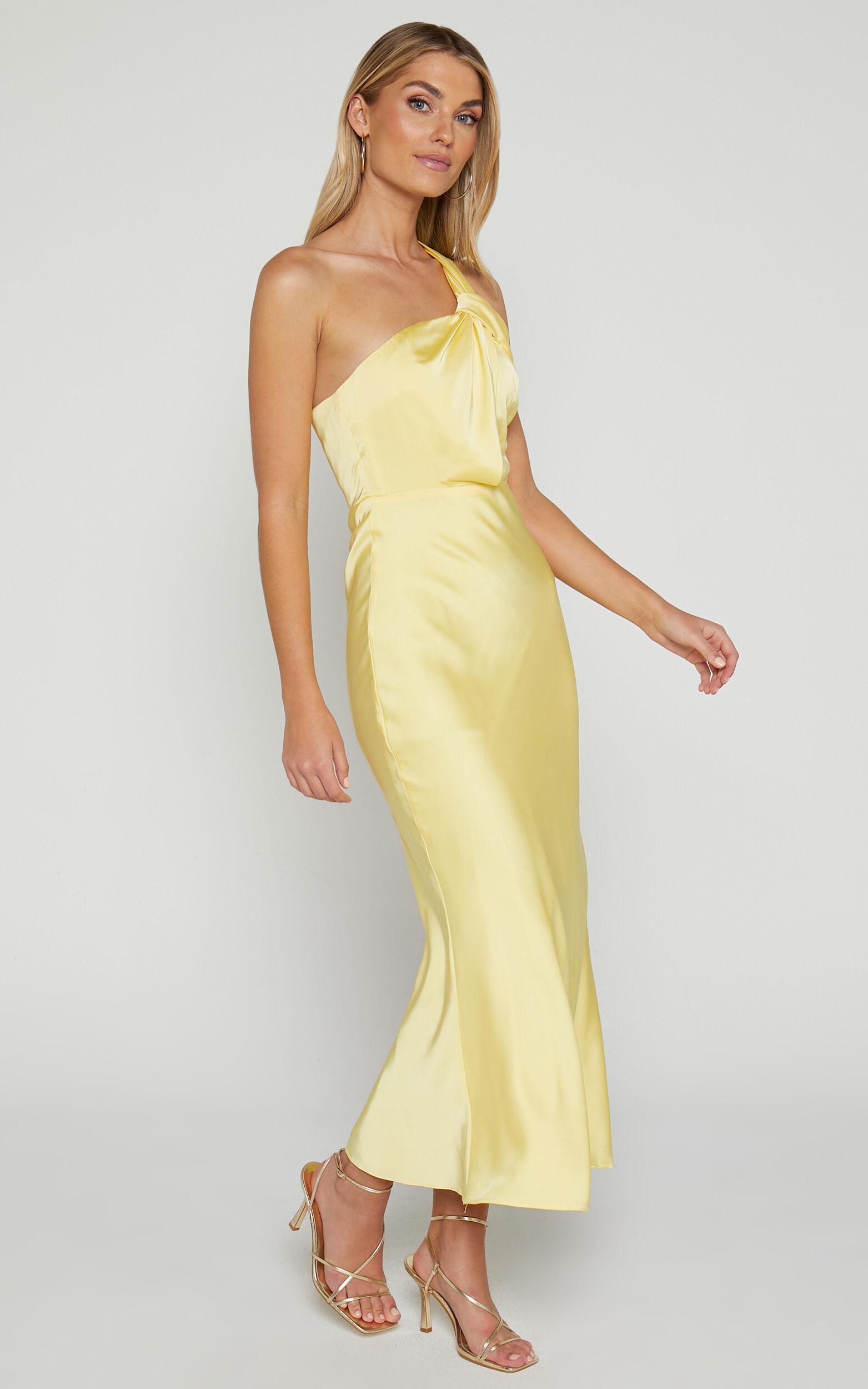 Get ready to turn heads in the Carmella Midi Dress! This stunning one-shoulder twist detail dress in butter yellow is perfect for any occasion. Made from luxurious satin, this slip dress will make you feel ultra-glamorous and confident all night long. The midi length adds an elegant touch, while the vibrant yellow color brings a pop of sunshine to your wardrobe. Whether you're attending a cocktail party or a special event, this dress is sure to make a statement. Embrace your unique style and stand out from the crowd with the Carmella Midi Dress - it's time to shine!Product Details:Slip dress in satinMidi lengthPerfect for cocktail parties