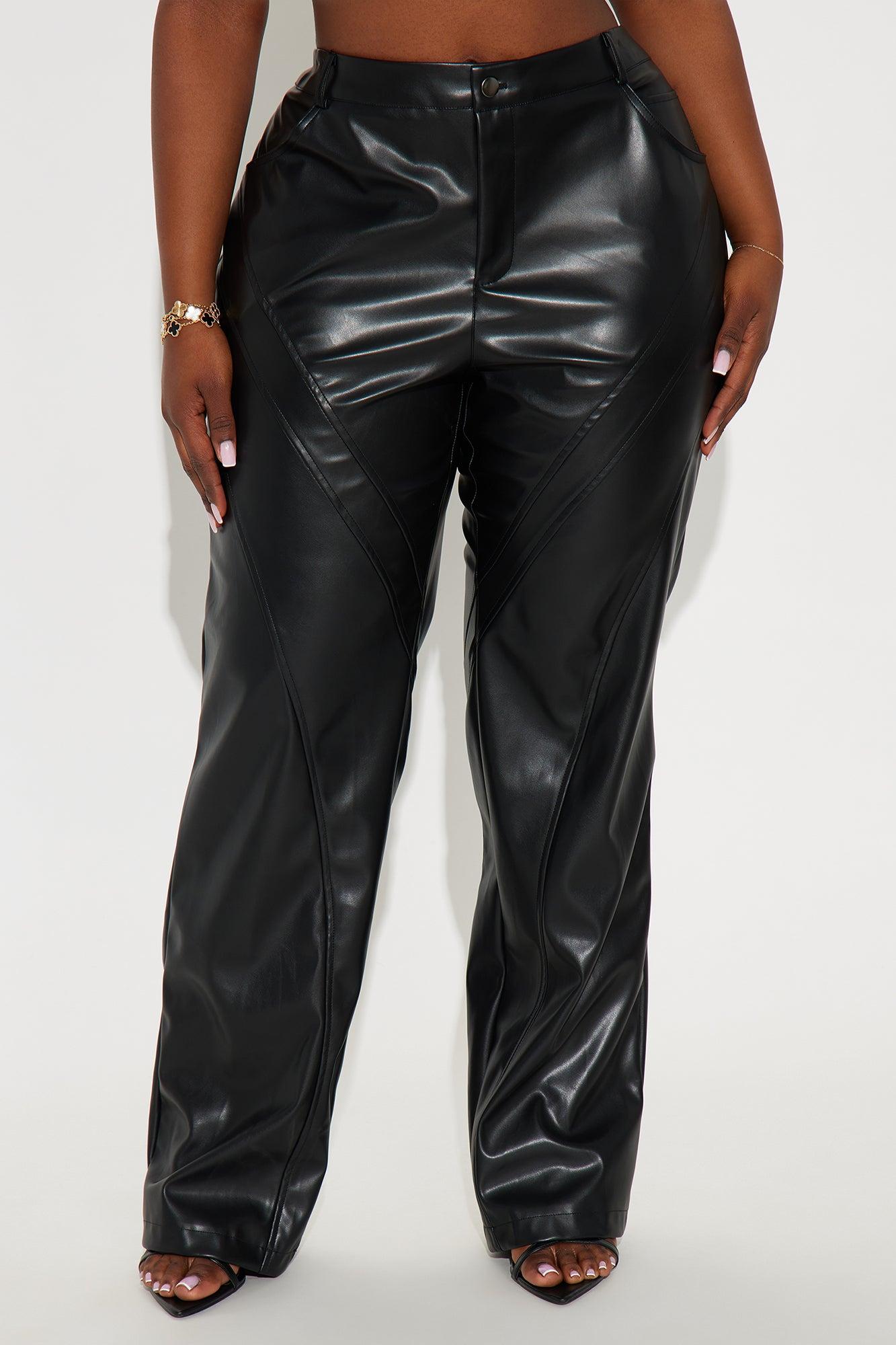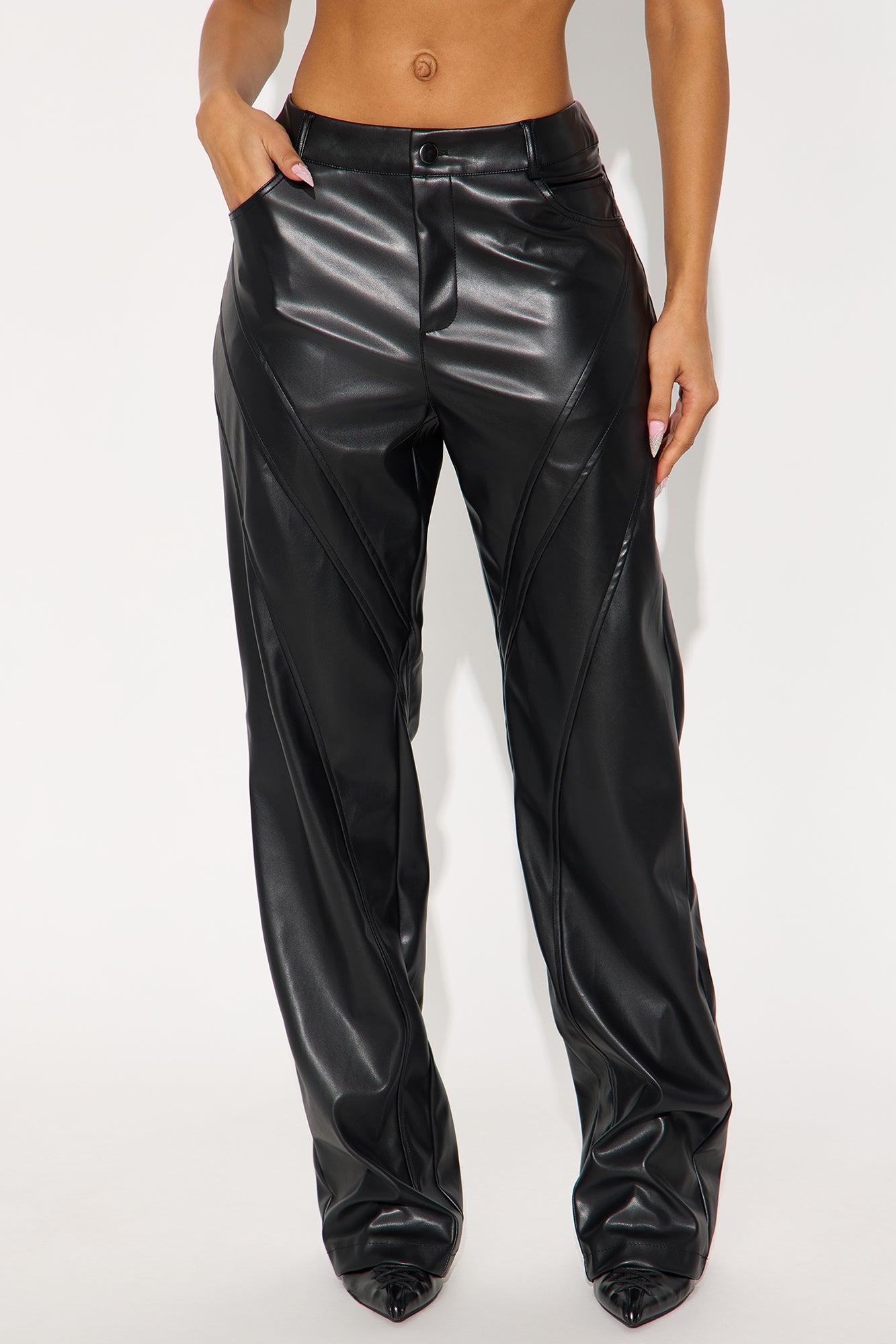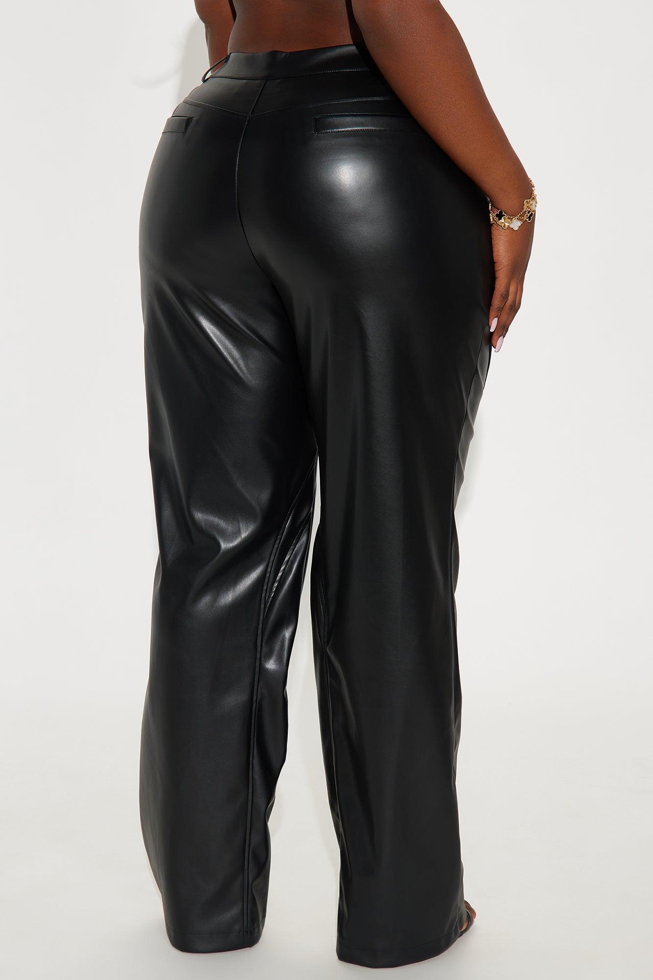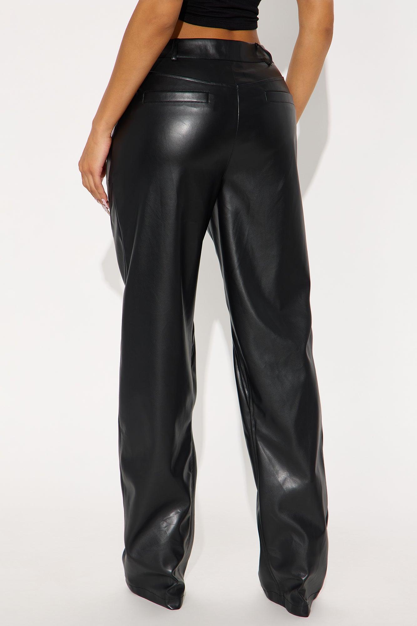 Available In Black. Straight Leg Pant Button And Zip Closure High Rise Faux Leather 33" Inseam Low Stretch Self Coating : 100% Polyurethane Backing: 100% Polyester Disclaimer: To Keep The Aesthetic Of This Garment, Please Follow The Care Instructions Carefully. Imported California Proposition 65WARNING: Cancer and Reproductive Harm - www.P65Warnings.ca.gov.