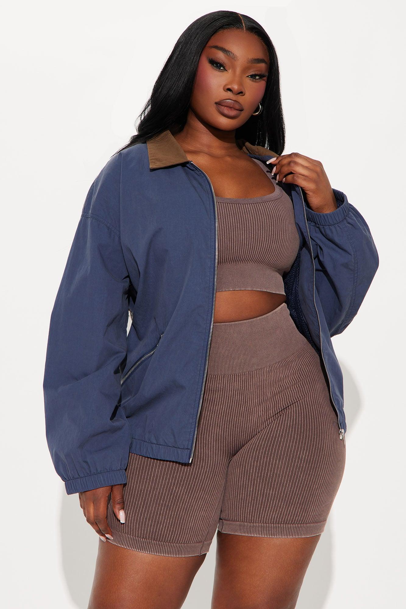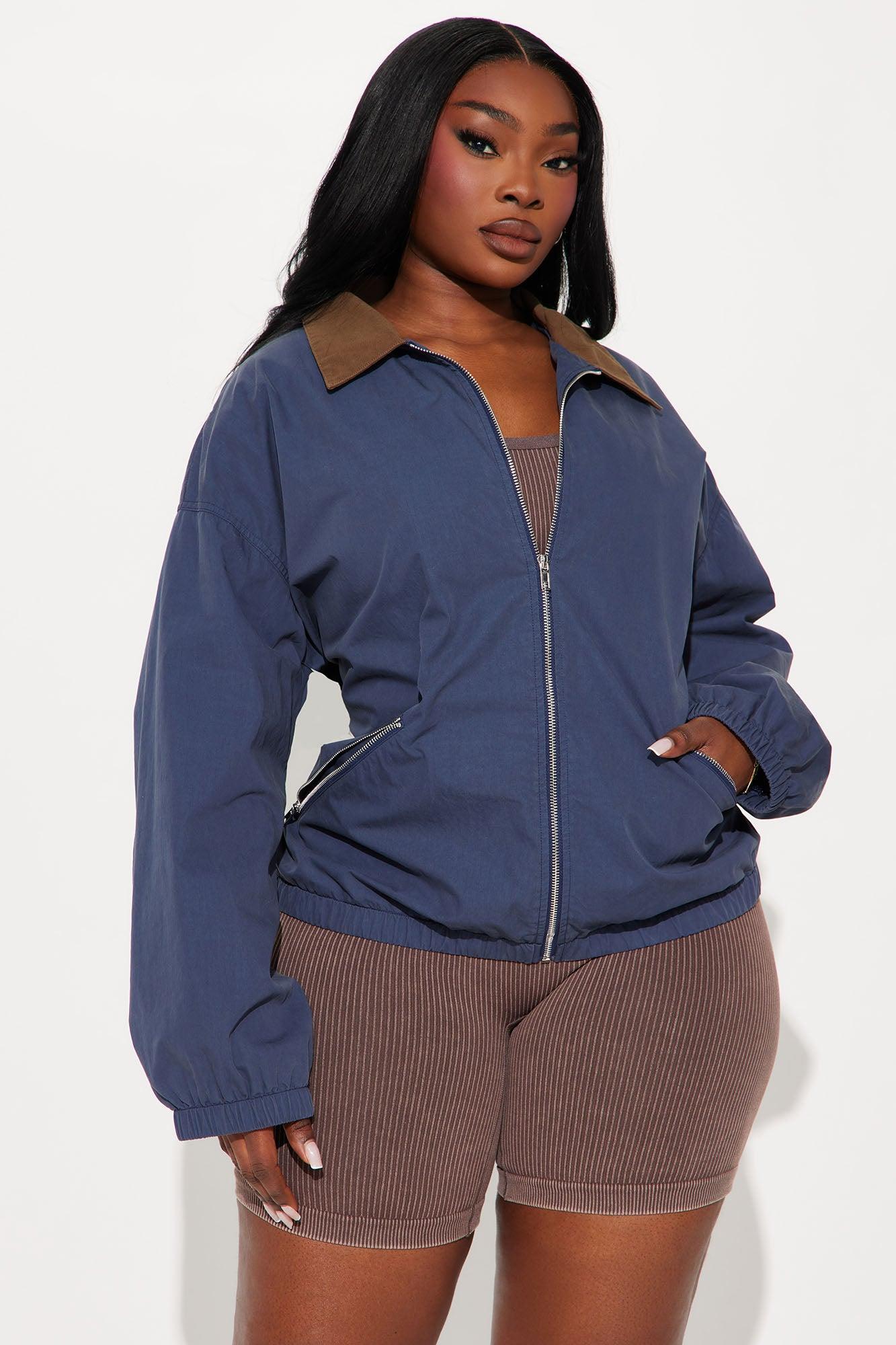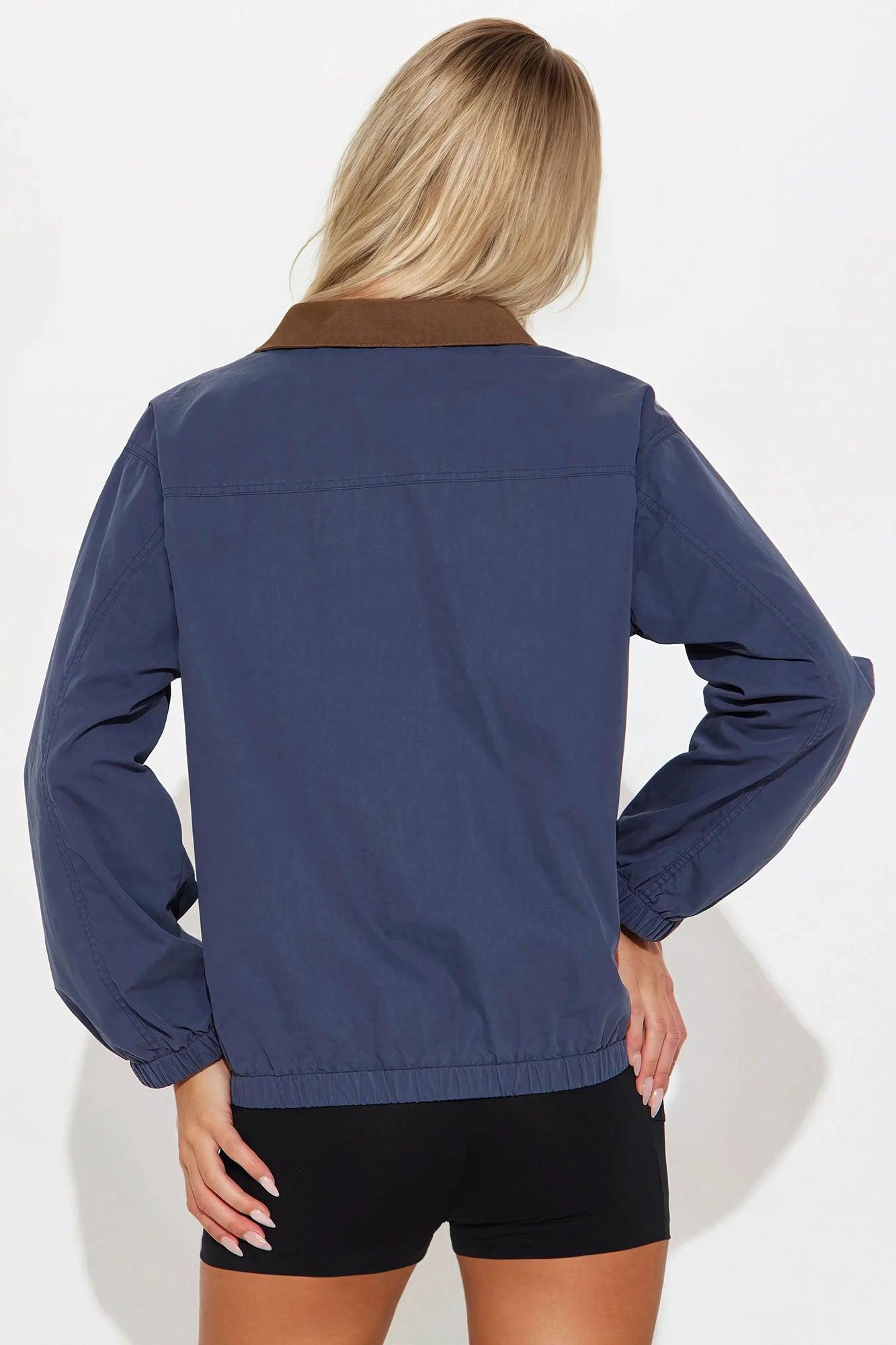 Available In Navy. Jacket Collar Long Sleeve Nylon Blend Full Zip Fully Lined Self: 75% Cotton 25% Nylon Contrast: 100% Cotton Lining: 100% Polyester Imported California Proposition 65WARNING: Cancer and Reproductive Harm - www.P65Warnings.ca.gov.