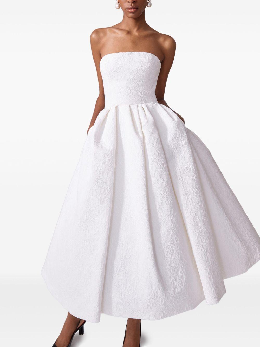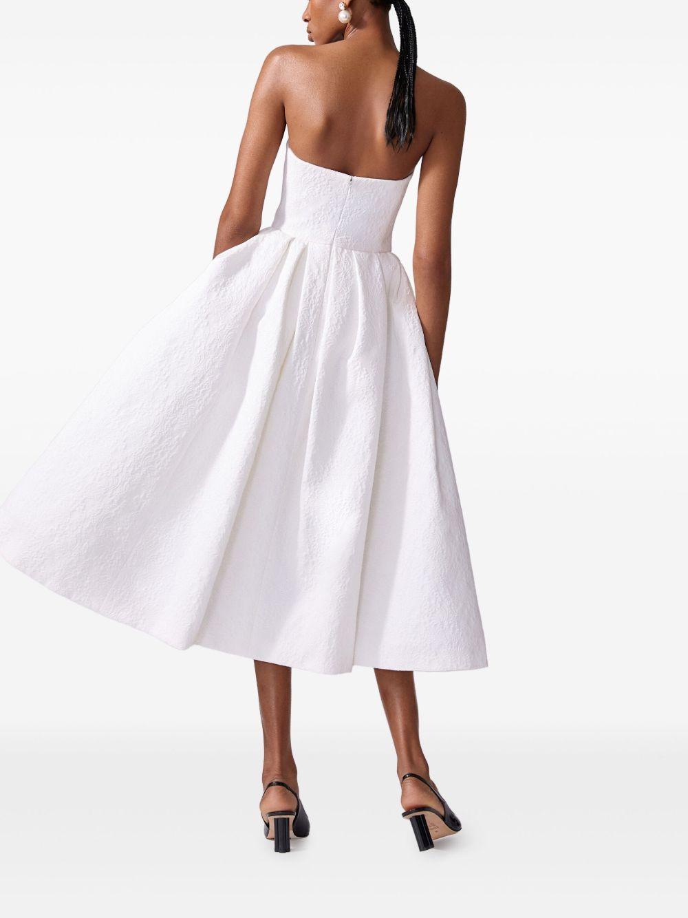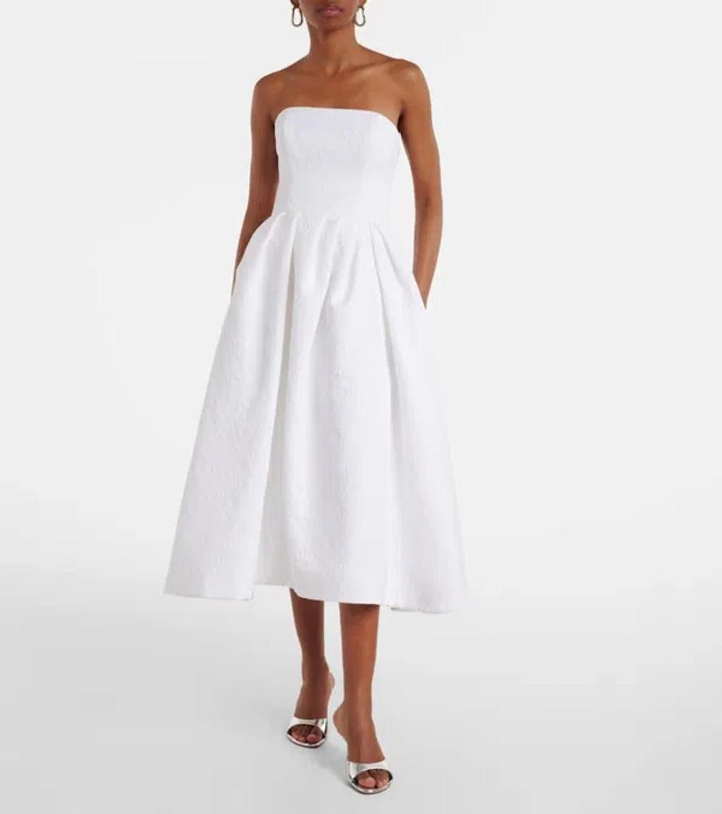 Shop Carolina Herrera Strapless Brocade Midi Dress In White from 800+ stores, starting at $2952. Carolina Herrera floral brocade dress featuring a pleated full skirt Strapless neckline Sleeveless Side slip pockets Fitandflare silhouette Hem falls below the knee Invisible back zip Cotton/viscose Dry clean Made in USA