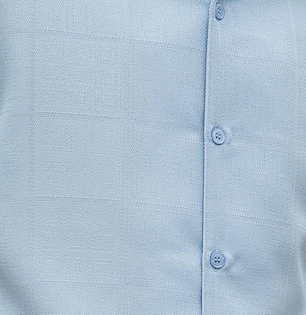 (2XL, 6XL) Carolina Blue Tone on Tone Check Walking Suit 2 Piece Short Sleeve Set