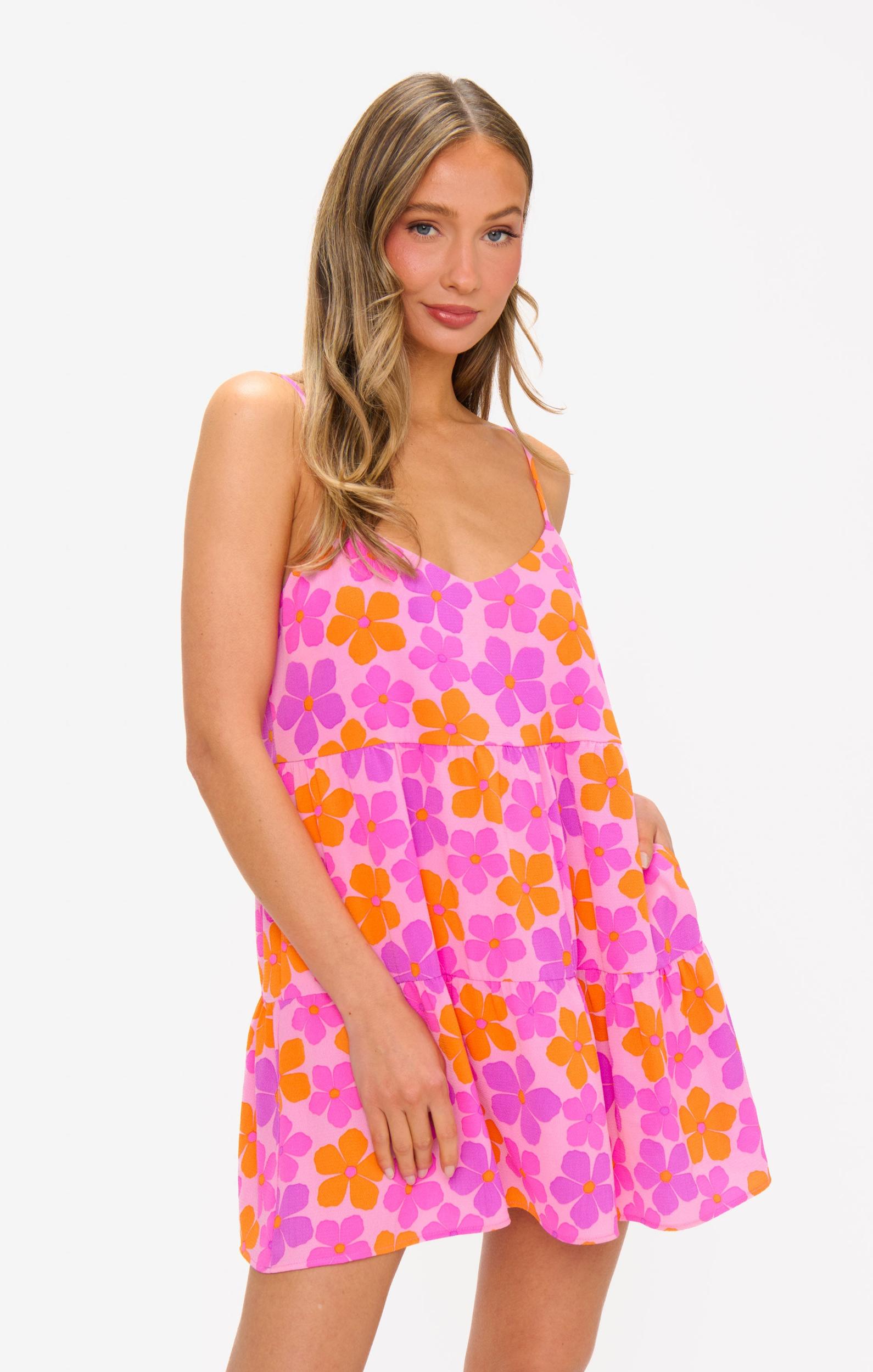 Your next pool day just got a whole lot cuter! We teamed up with long-time Mumu lover and one of our fav influencers, Krista Horton, to create a fun & vibrant spring/summer collection! This collab has everything we love - sunshine, daisies, and twinning styles for the whole fam! Get ready to soak up the sun and make unforgettable memories with your crew!The Caroline Mini Dress is vacay-ready with a vibrant pink daisy print, breezy fabric, and adjustable straps - just throw her on and you're good to go!