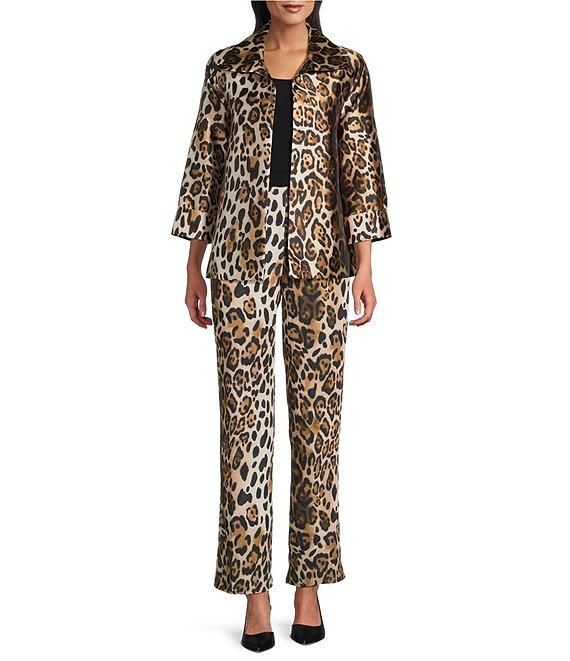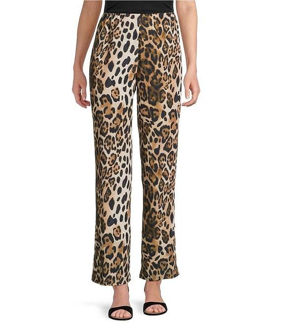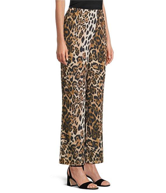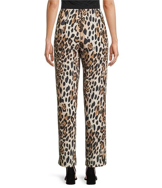 Caroline Rose Coordinating Leopard Print Matte Crepe Flat Front Pull-On Straight Leg Pants