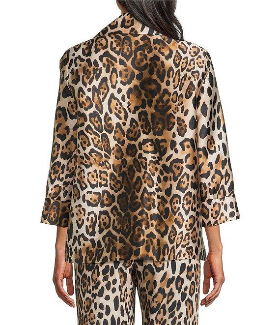 From Caroline Rose, this jacket features: Luxurious Mikado woven fabrication Leopard print Spread collar neckline Cuffed bracelet sleeves Side seam pockets Straight hem Lined Open-front; no closure Approx. 26" length Polyester Dry clean Made in the USA.