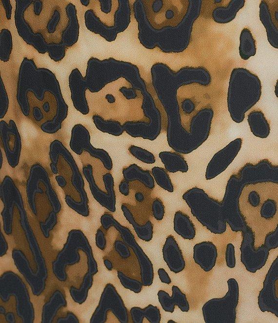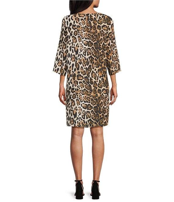 Caroline Rose Leopard Print Matte Crepe Round Neck 3/4 Sleeve Shift Dress