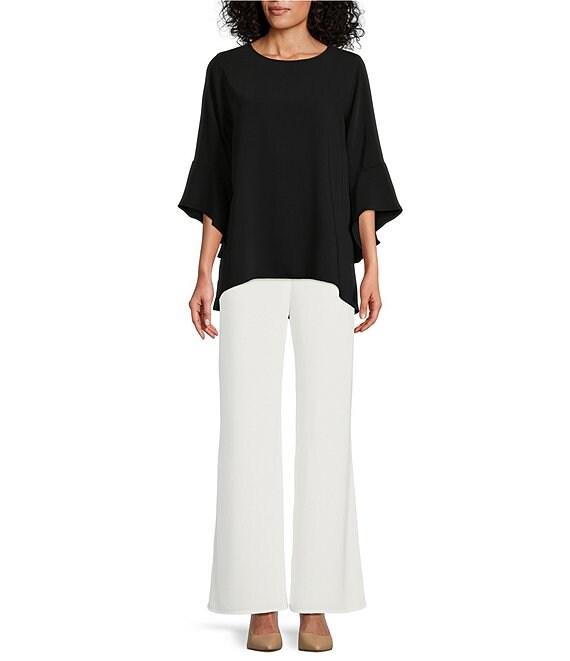 From Caroline Rose, these pants feature:Matte crepe fabricationWide leg silhouetteElasticized waistbandFlat frontRelaxed fitPull-on constructionApprox. 30" inseamPolyesterHand washMade in the USA.