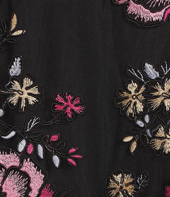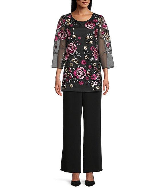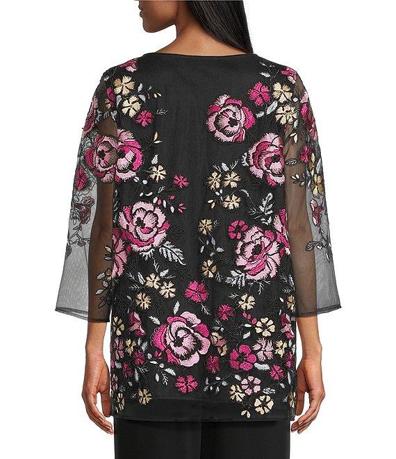 From Caroline Rose, this tunic features:Pink rose floral embroidered mesh fabricationEasy fit tunic silhouetteScoop neckline3/4 sleevesLined body with sheer sleevesStraight hemlinePullover constructionApprox. 24" lengthNylon; lining: polyester stretch knitDry cleanMade in the USA.