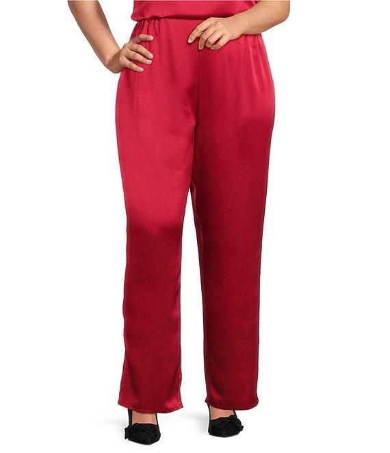 Caroline Rose Plus Size Satin Straight Leg Pull-On Coordinating Pants