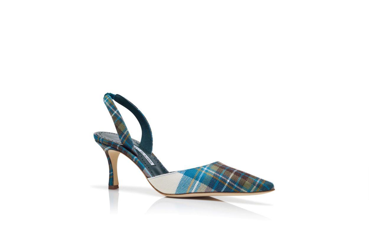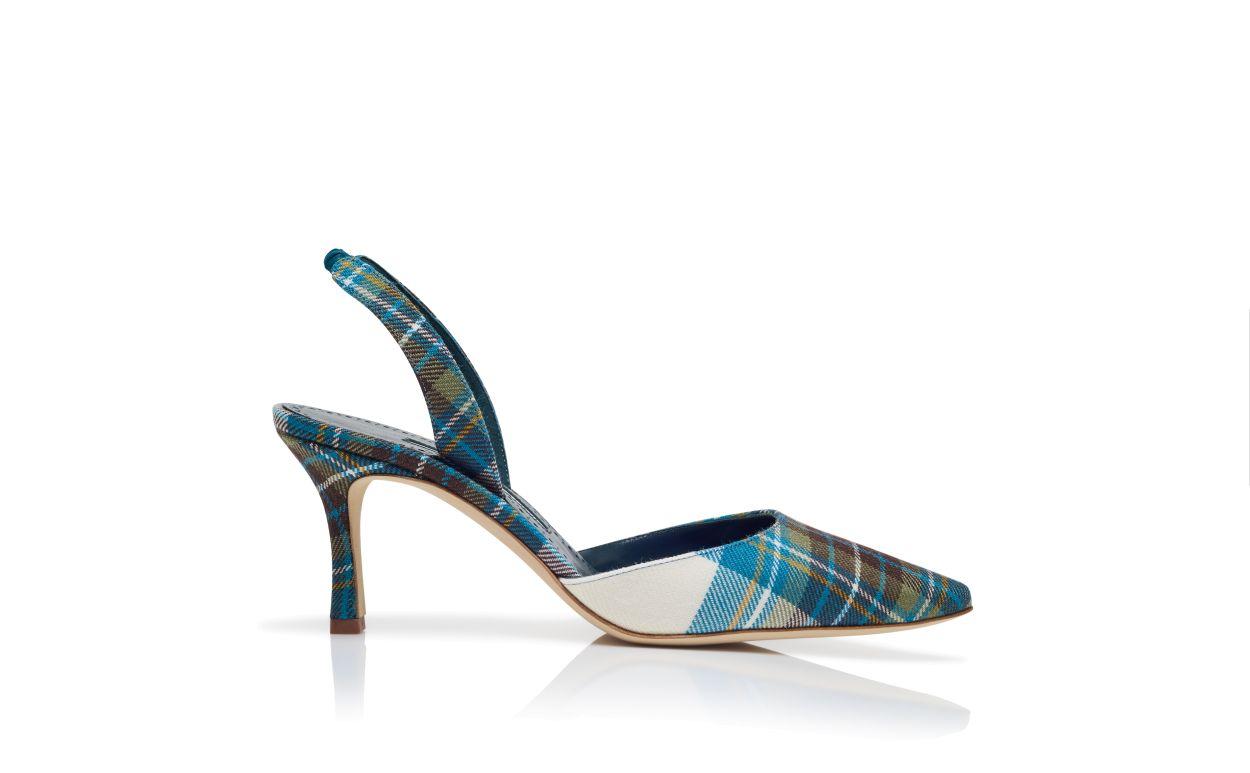 CAROLYNE 70 Blue Wool Tartan Slingback Pumps