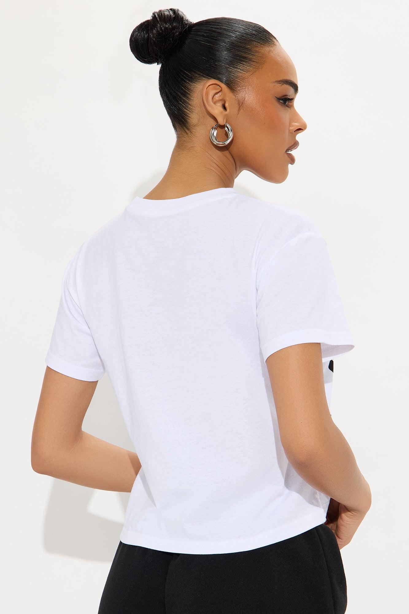Available In White. Crew Neck Short Sleeve Front Screen Stretch 60% Cotton 40% Polyester Imported