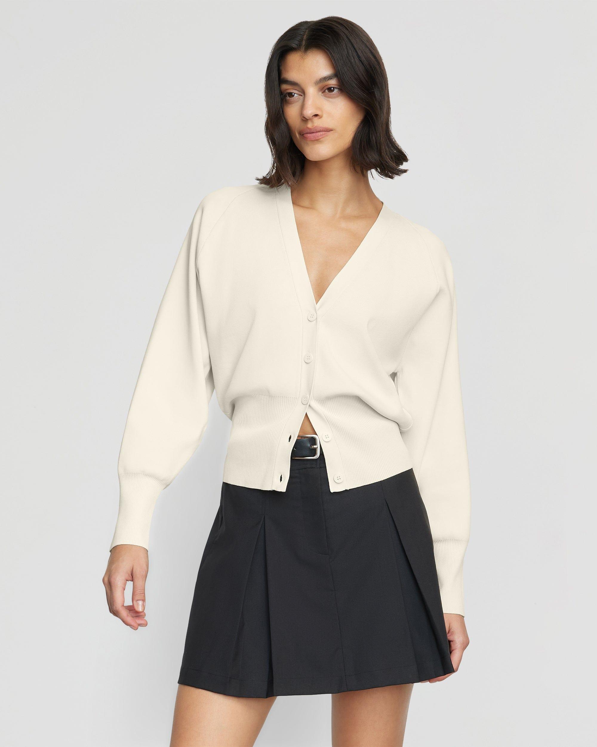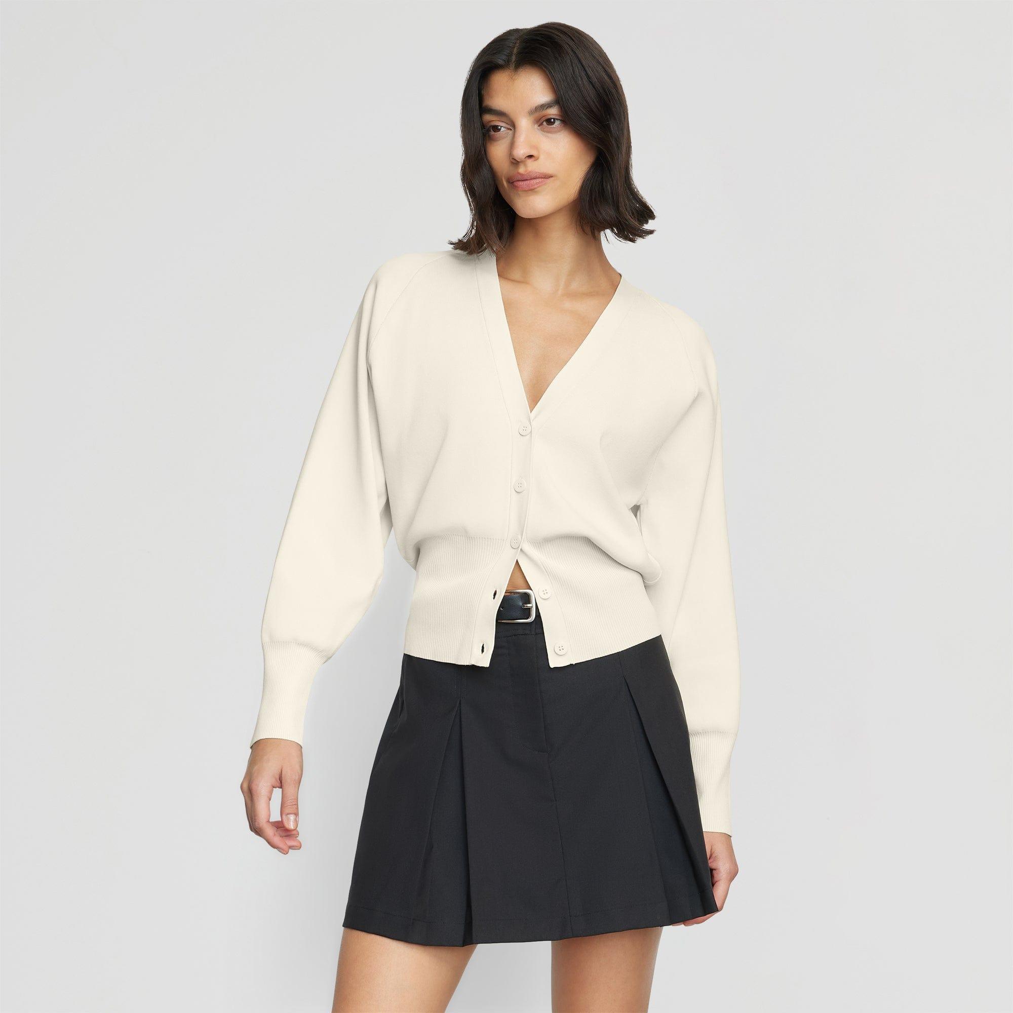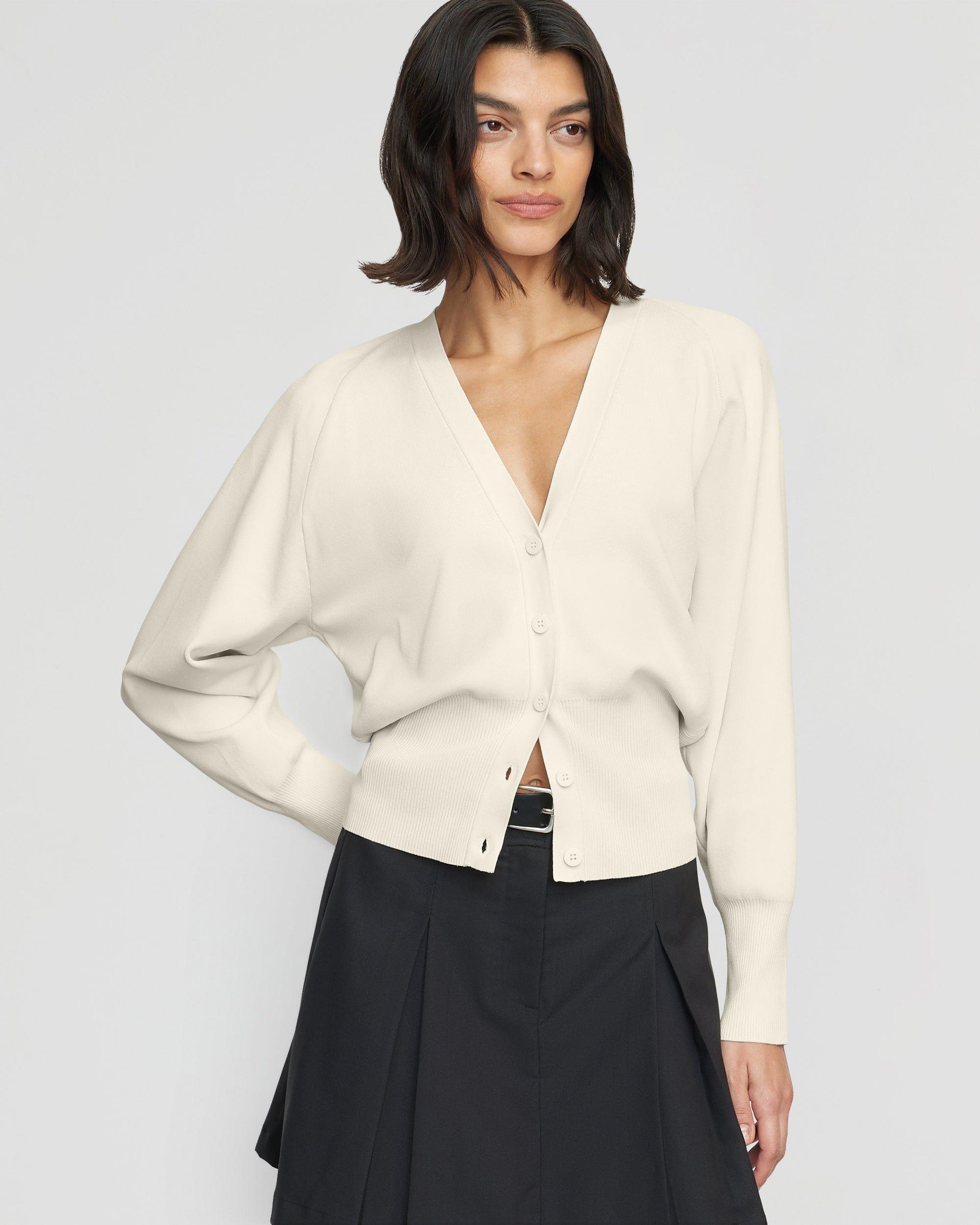 Effortlessly chic and versatile, this modern take on the classic button-front cardigan is a no-brainer addition to your wardrobe. We love to style Carson buttoned up as a top, or layered and open over a tank.