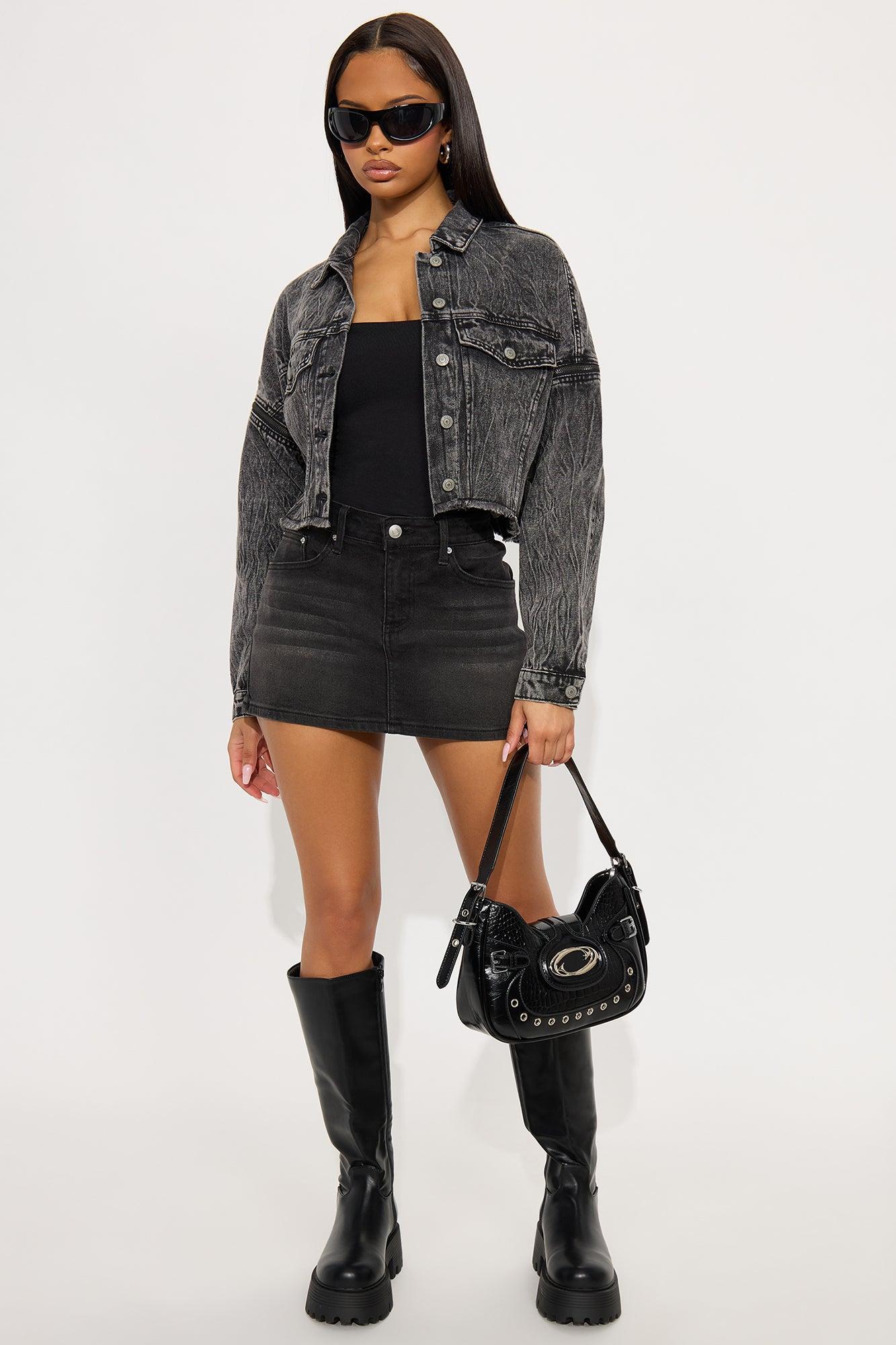 Carson Convertible Denim Jacket - Acid Wash Black Female