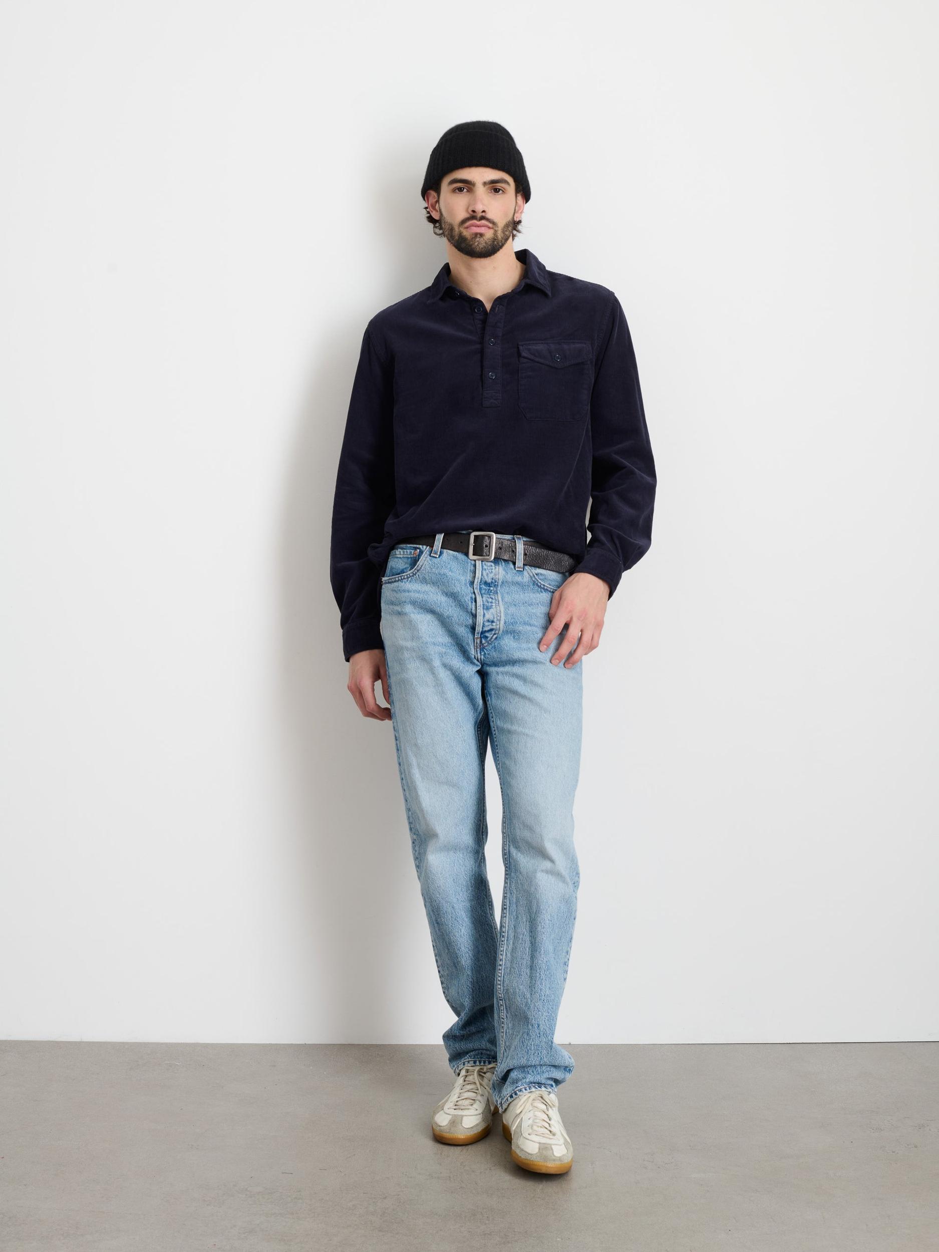 Pair this cool cord popover with just about any jean or chino in your closet. Add a jacket and go. Crafted in a fine wale cord that's lightweight and easy to layer. Fits true to size Gordon is 6'1" and wearing a size medium Size medium measures 47.5" around the chest, 19.25" across the shoulder, and 29.5" long. Sleeve