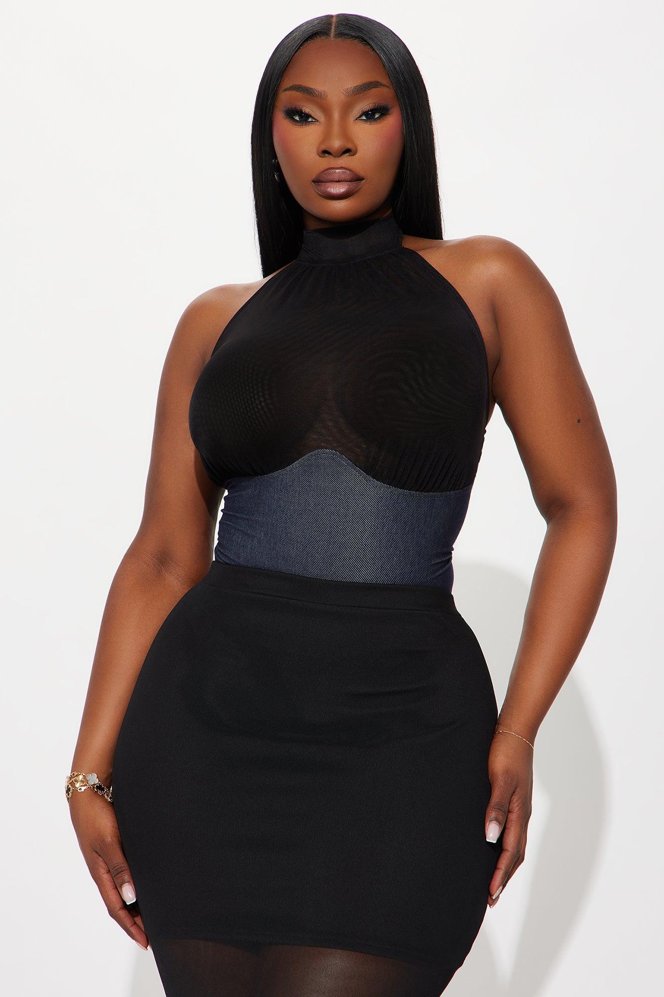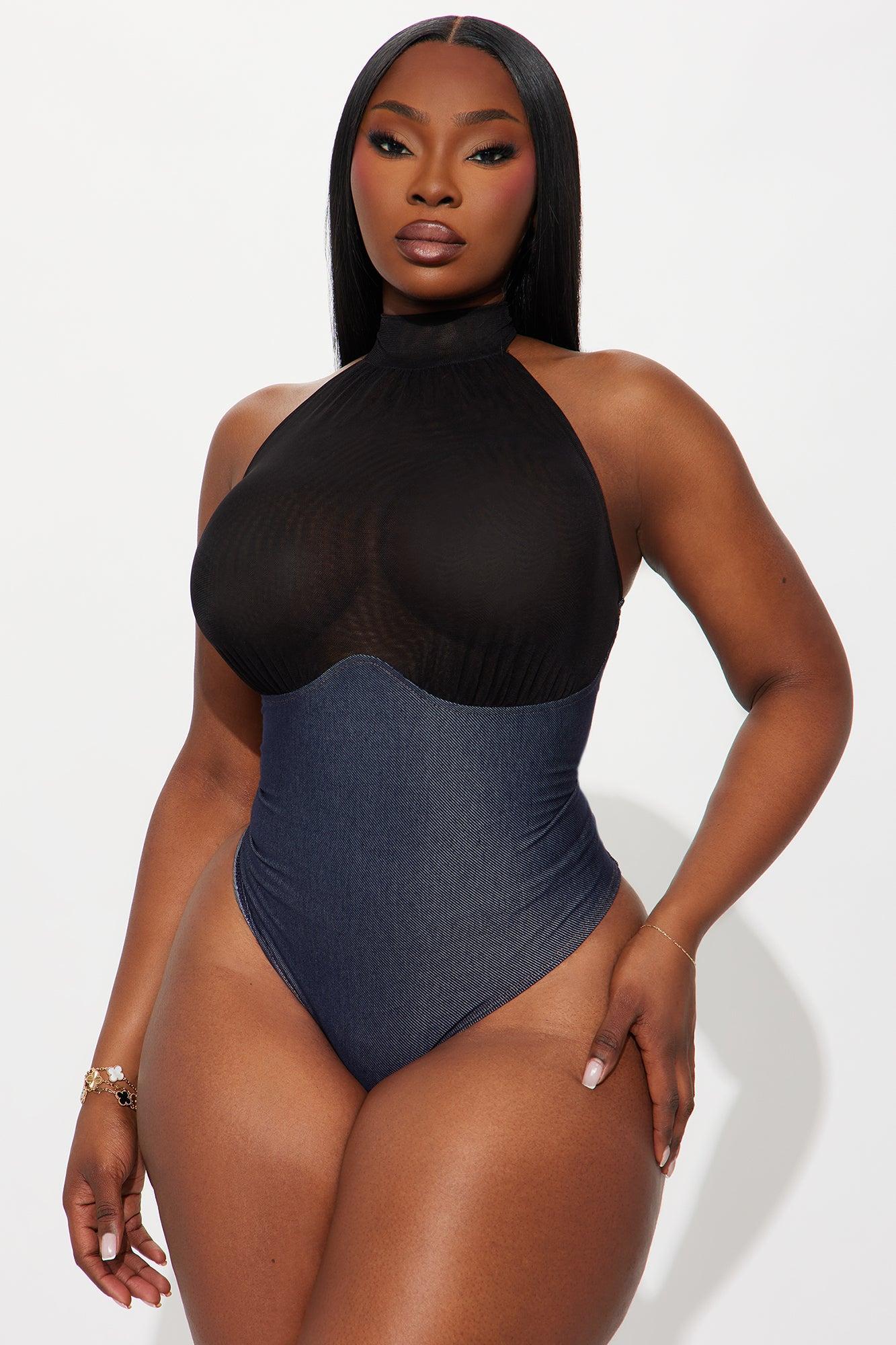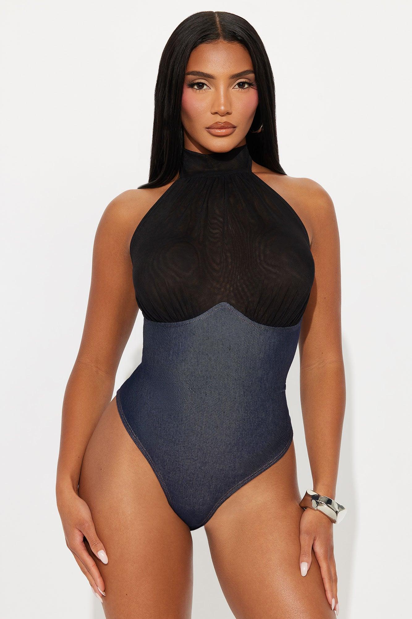 Carter Sheer Halter Mock Neck Bodysuit - Blue/combo Female