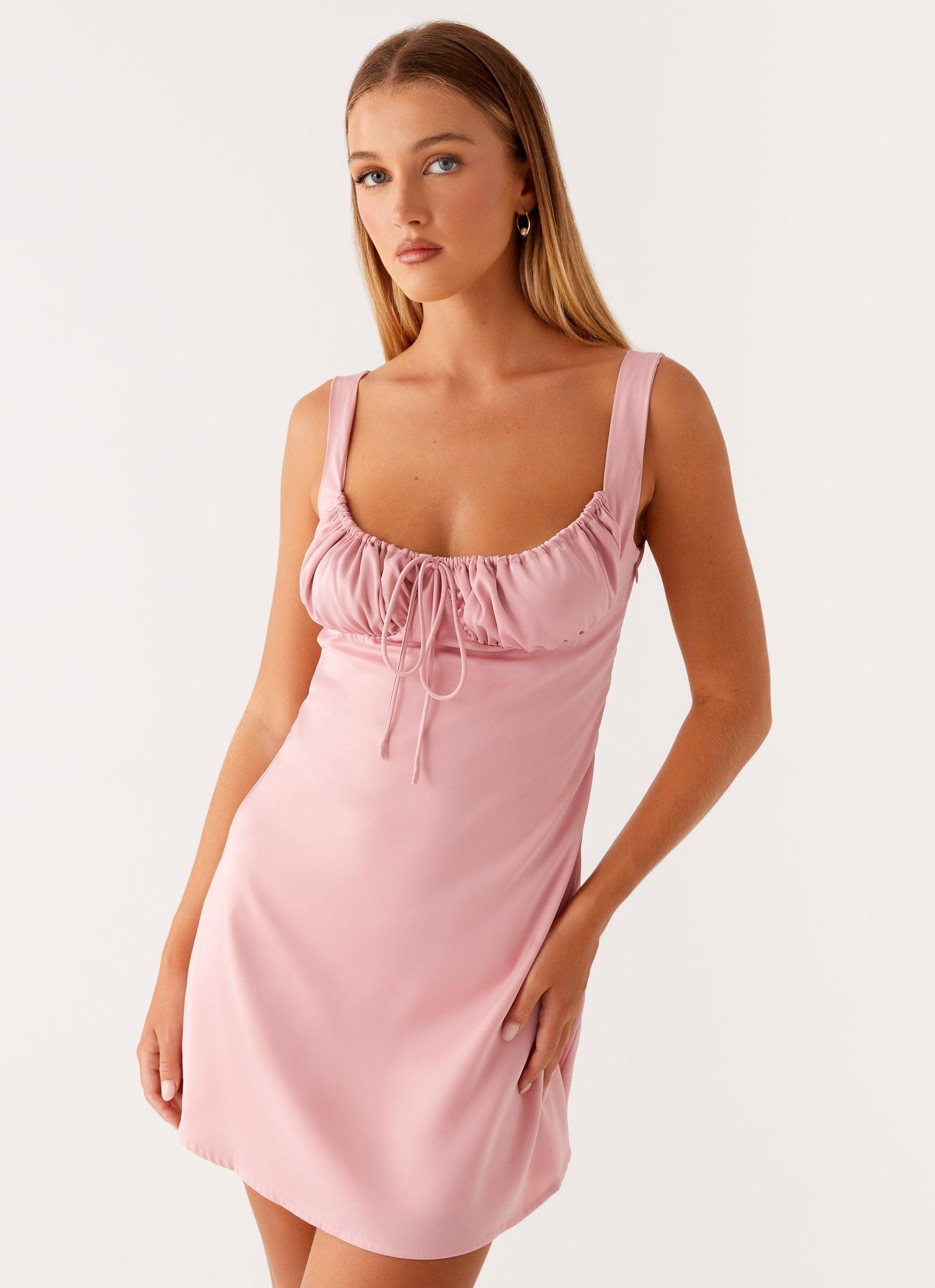 Peppermayo Exclusive The Caseta Mini Dress is the epitome of effortless romance. Featuring a delicate sweetheart neckline and a chic front tie detail, it flatters the silhouette with a touch of softness. - Mini length- Sweetheart neckline- Ruched neckline- Front tie- Thick adjustable straps- Fully lined- Side hook and eye, invisible zipper- 100% polyester- Lining: 95% polyester, 5% spandex Size AU 8 / US 4 garment measurements: Bust: 76 cm / 29.9 in.Waist: 70 cm / 27.6 in.Hem: 120 cm / 47.2 in.Length: 79 cm / 31.1 in. Yasmin is 174cm and wearing a size AU 8 / and US 4