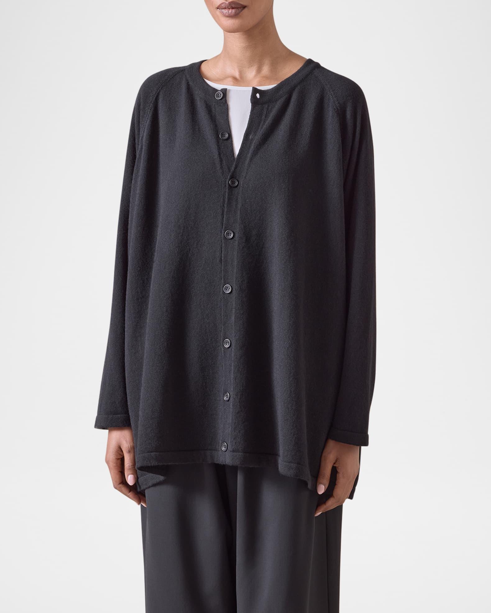 Cashmere Raglan-Sleeve Round-Neck Cardigan (Long Length)