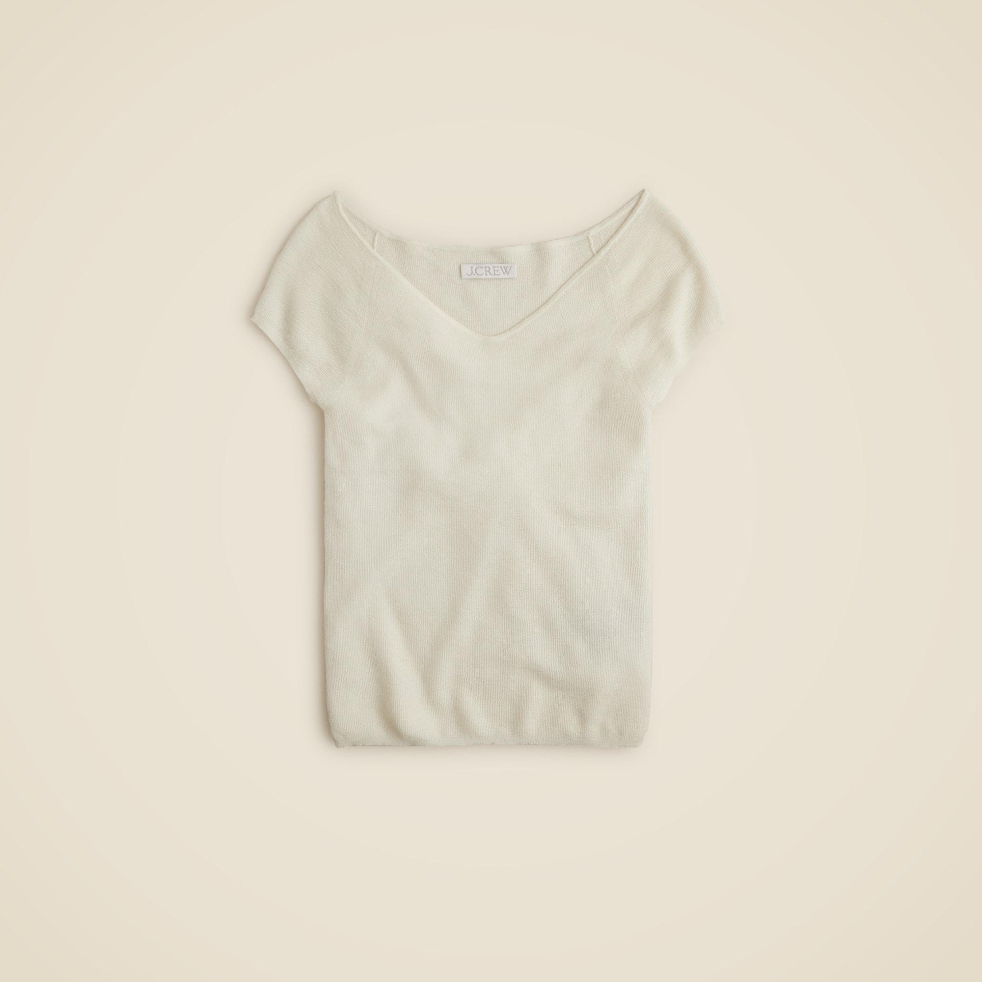 Cashmere-silk blend wide V-neck sweater T-shirt