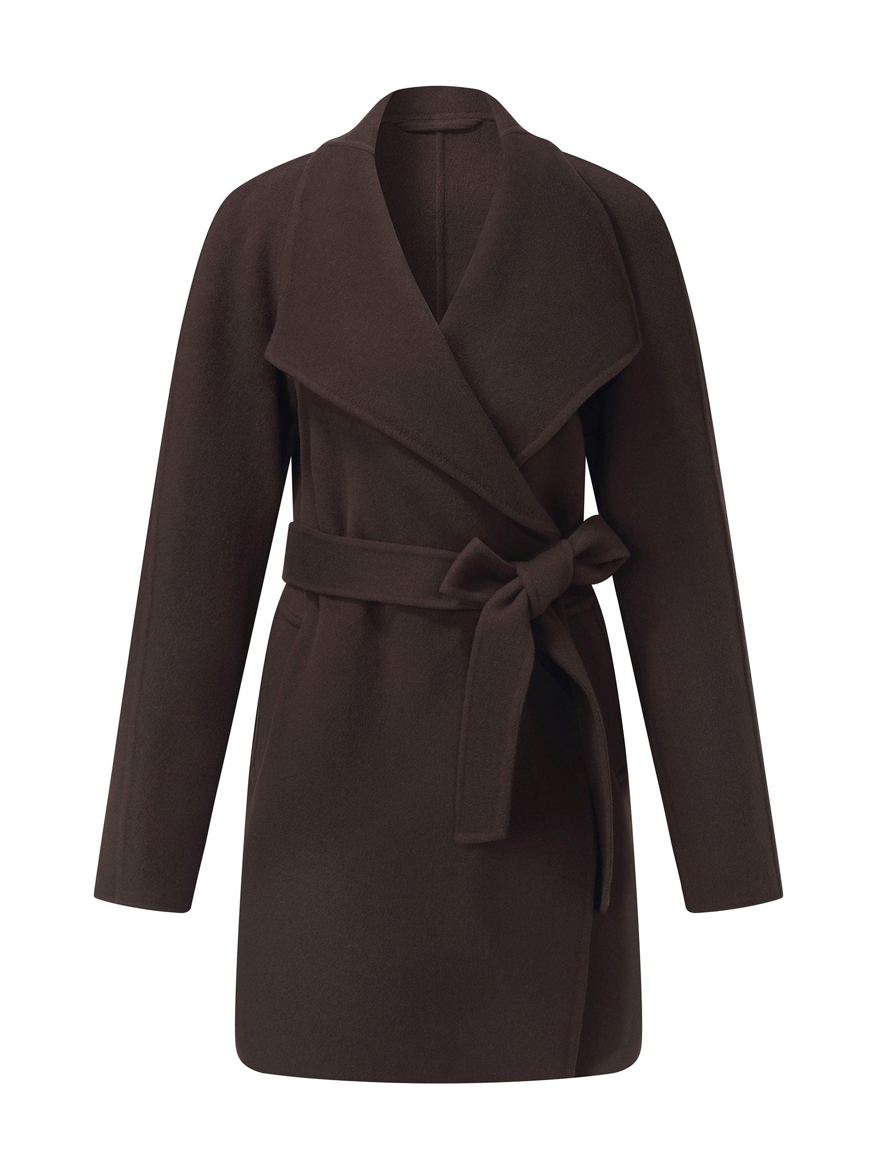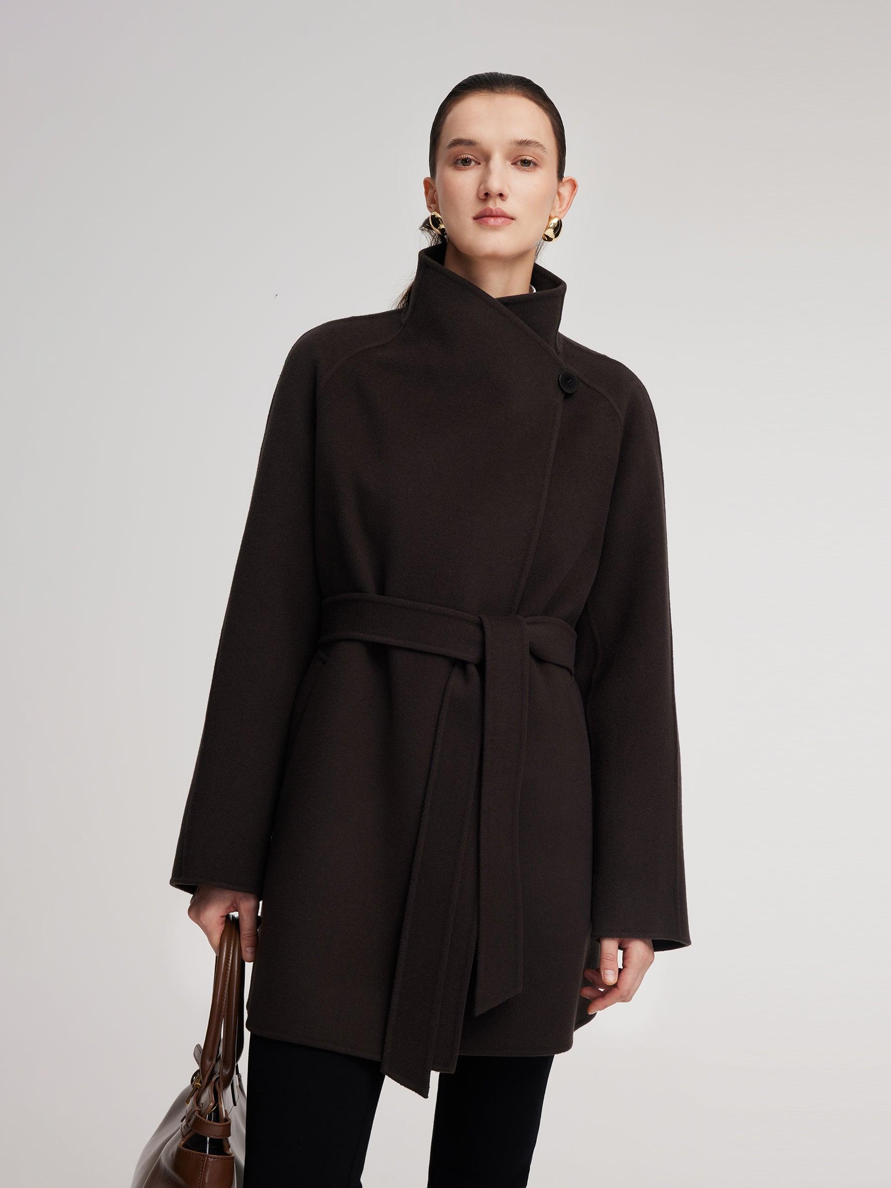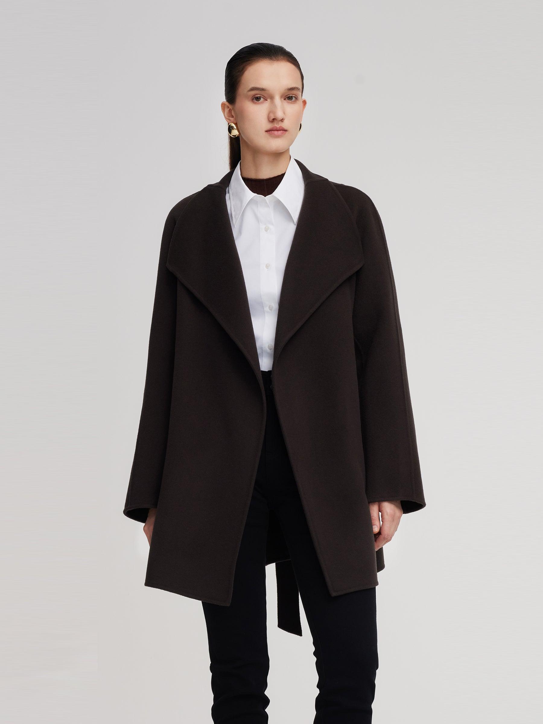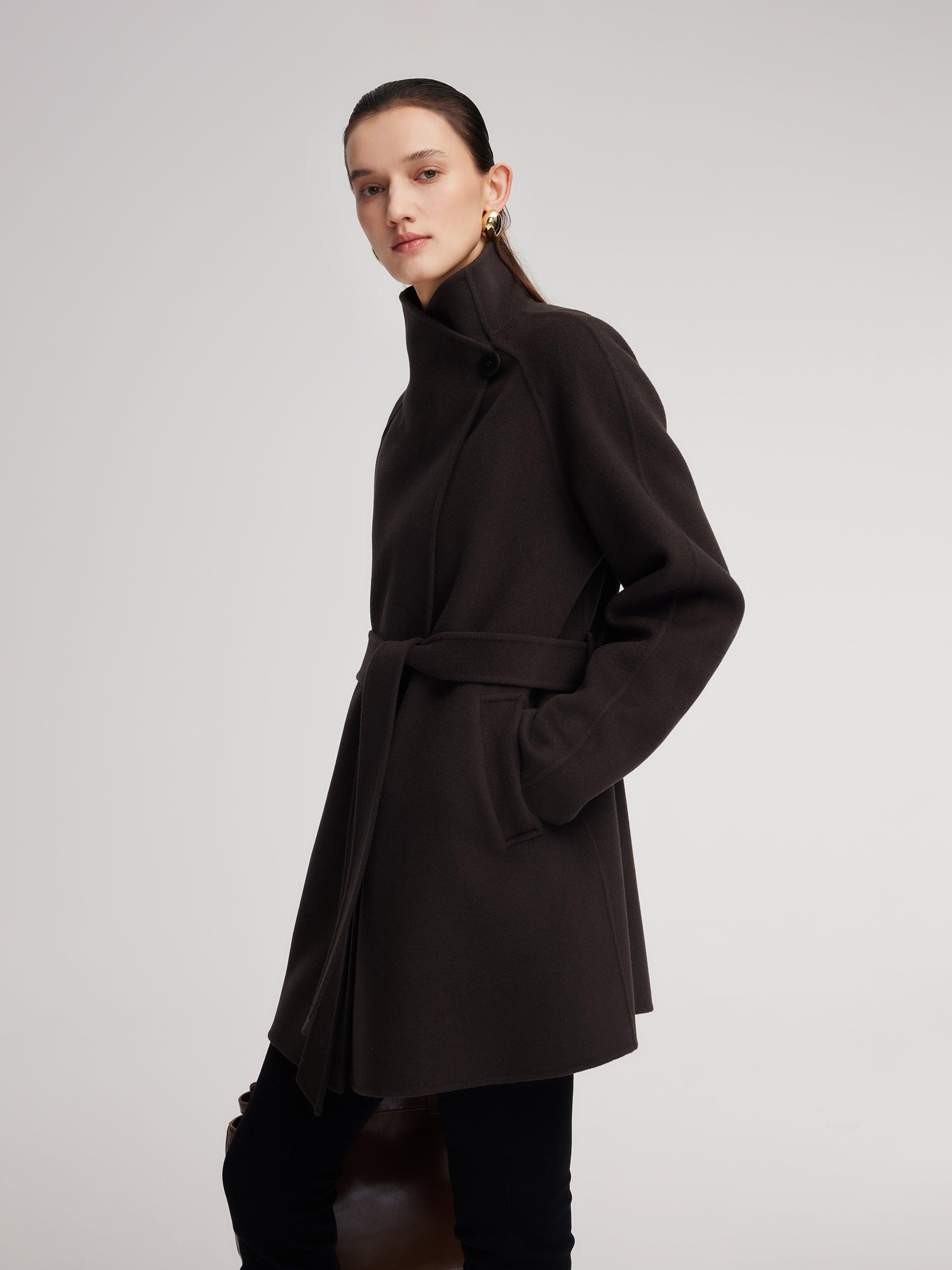 -Cashmere wool blend -Convertible collar ( stand collar & lapel ) -With pockets Made from a soft, warm wool-cashmere blend, this mid-length coat features a relaxed small-A silhouette that drapes naturally and flatters all body types. The versatile stand-and-fold collar keeps the neck warm while adding structure, an